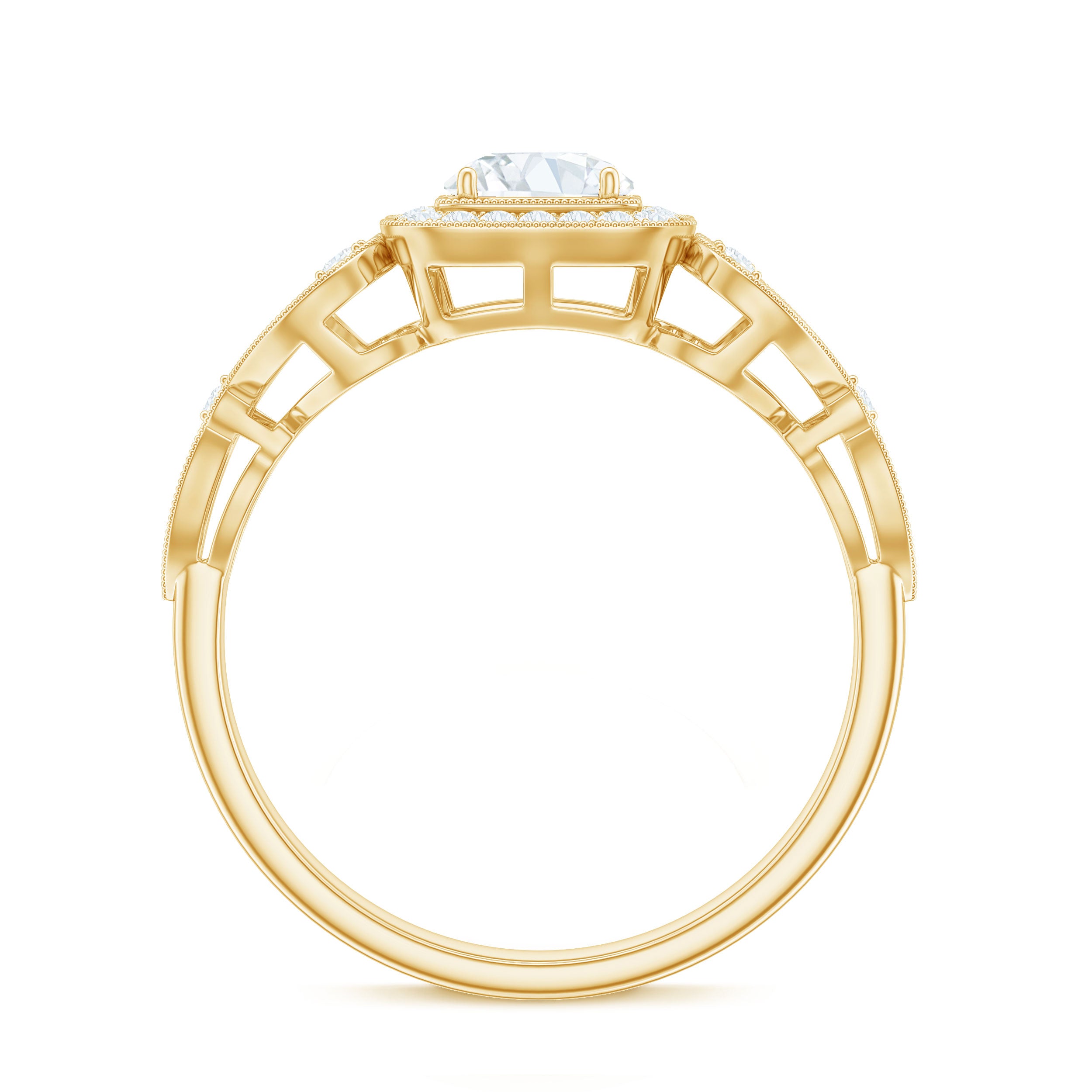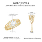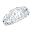 Step into timeless elegance with this intricately crafted Vintage Moissanite Engagement Ring, designed to capture the romance and charm of a bygone era. At the heart of this exquisite piece is a 5 MM round cut moissanite, expertly prong set to allow maximum light play and brilliance. Known for its fiery sparkle and exceptional durability, the D-VS1 Quality Moissanite offers a breathtaking alternative to natural diamond, perfect for the modern bride with vintage tastes. Surrounding the center stone is a delicate halo of smaller moissanites, beautifully arranged to amplify its glow and add a luxurious dimension. Intricate beadwork lines the halo, adding texture and a soft antique touch. The band of this Antique Looking Engagement Ring is a true showstopper, adorned with ornate filigree patterns that gracefully wrap around the finger. Set with additional moissanites and beaded detailing, the band adds depth and storytelling to the design, reminiscent of heirloom rings passed down through generations. Inspired by the sophistication of Art Deco design, this Halo Engagement Ring blends old-world craftsmanship with contemporary ethics. Presented in a signature box, it is ready to mark one of life’s most unforgettable moments.