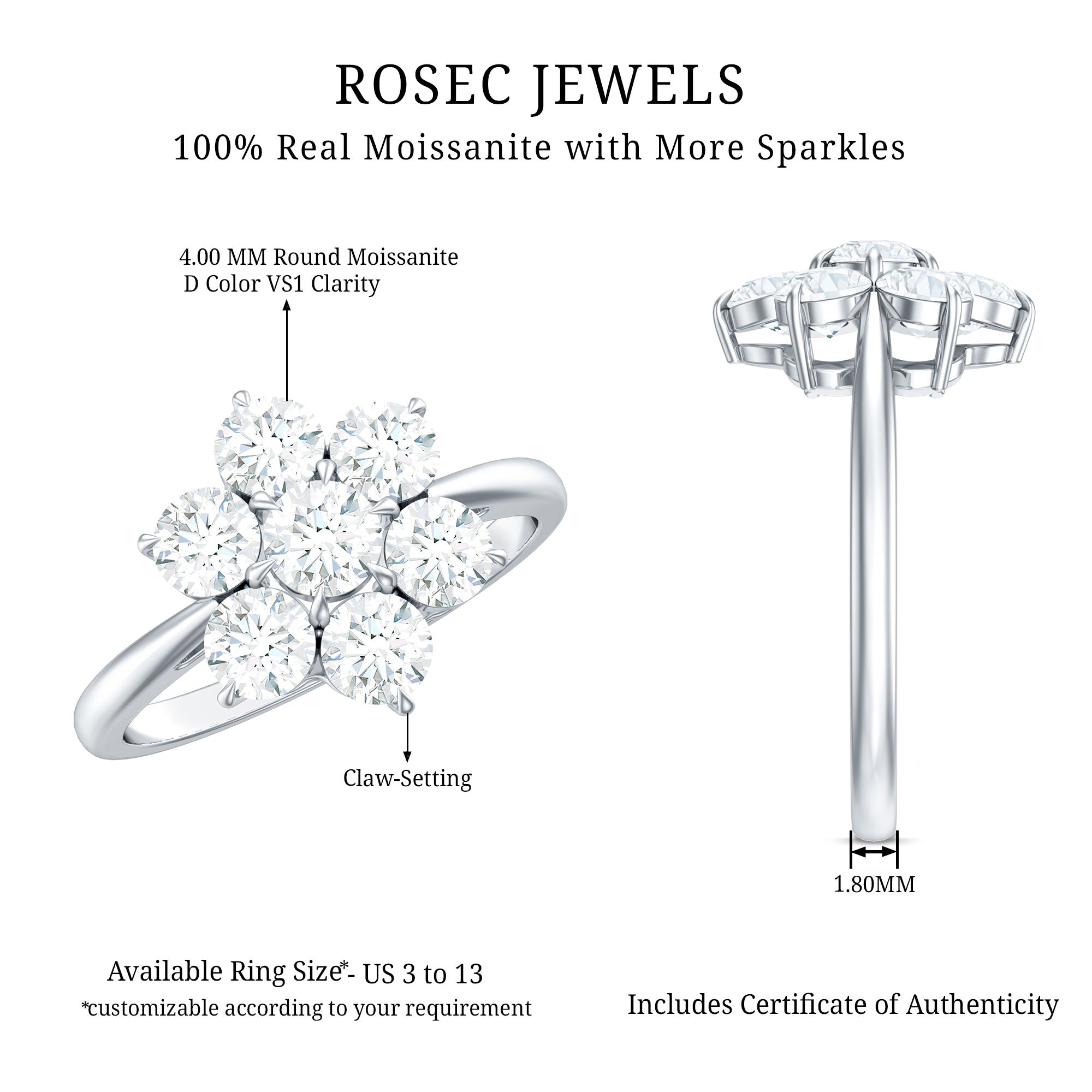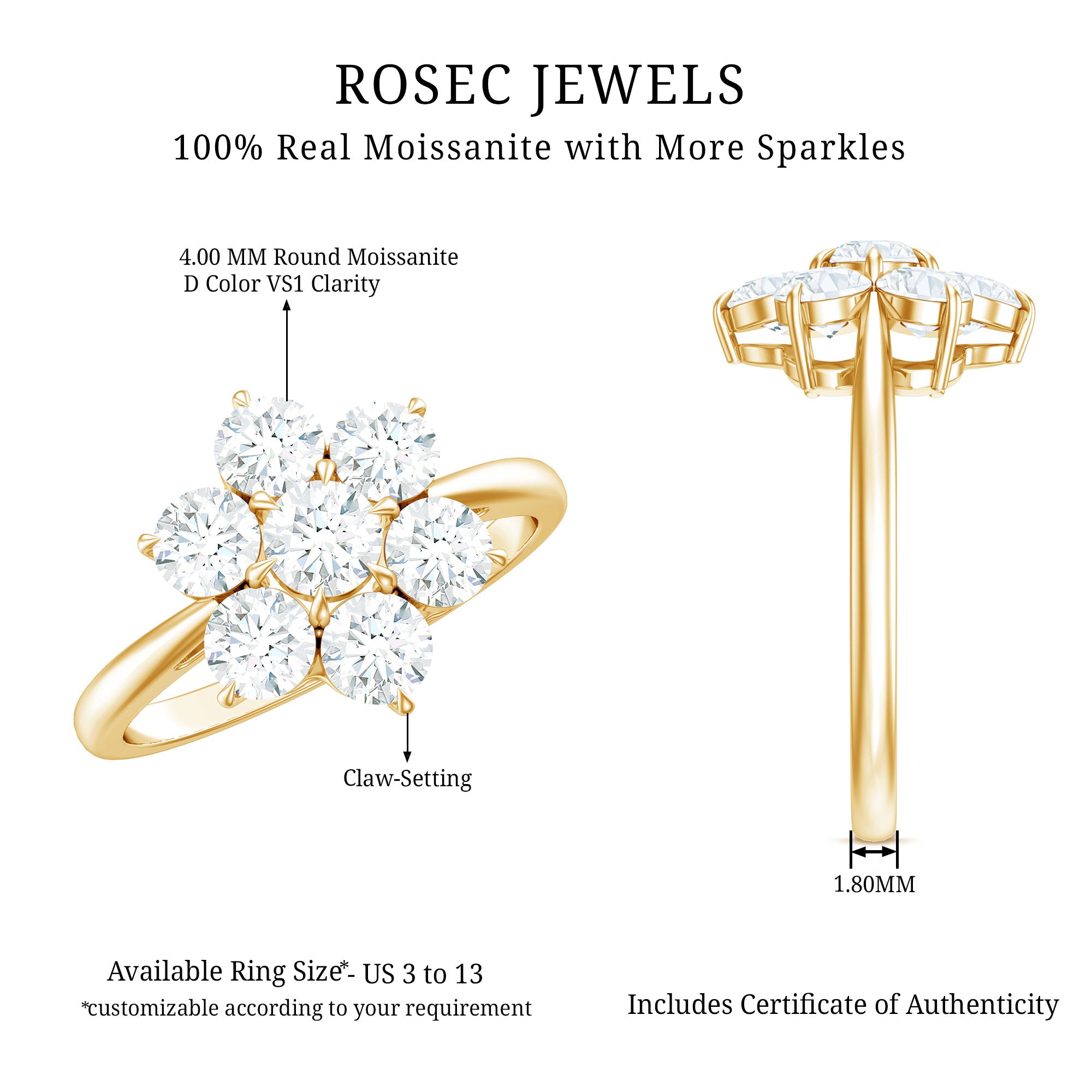 Nature’s charm meets modern romance in this uniquely Floral Engagement Ring. At the core of this enchanting design is a delicate cluster of prong set round cut moissanites (D-VS1 quality), expertly arranged to form a blooming flower that sparkles from every angle. The floral motif adds a graceful and feminine touch to this Cluster Engagement Ring, capturing the spirit of love in full bloom. Carefully crafted and designed to last, this Moissanite Engagement Ring combines classic elegance with a playful charm, ideal for women who appreciate fine jewelry that feels personal and expressive. The stunning moissanites reflect light beautifully, offering an ethical and sustainable choice without compromising on brilliance. Presented in a delightful jewelry box, it is ready to be given as a gift or cherished as a keepsake that represents a love that continues to grow. Let this Moissanite Flower Ring be a lasting reminder that love, like flowers, thrives with care and intention.