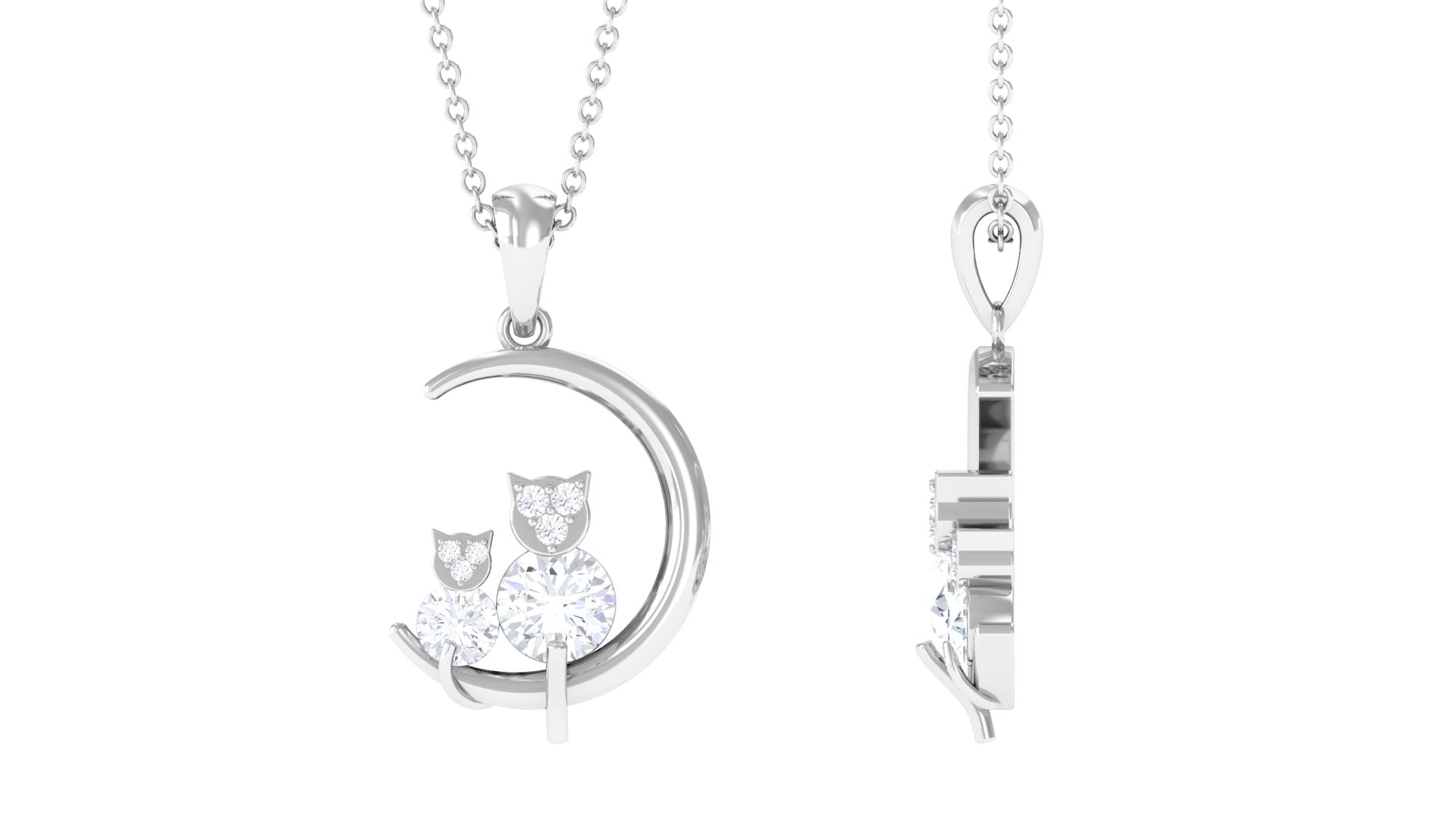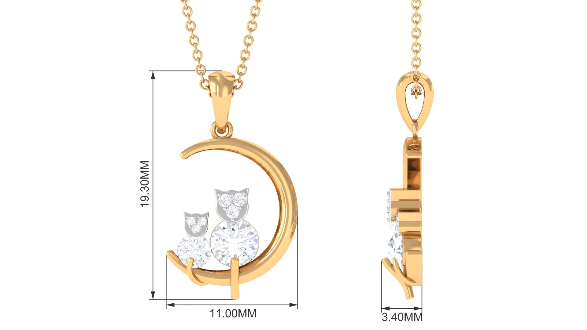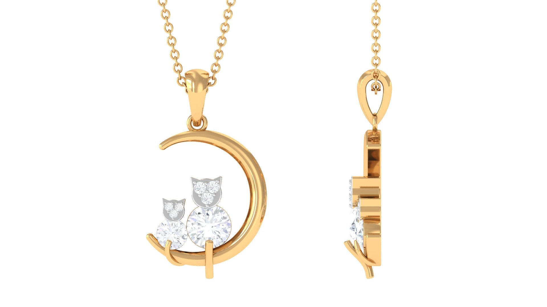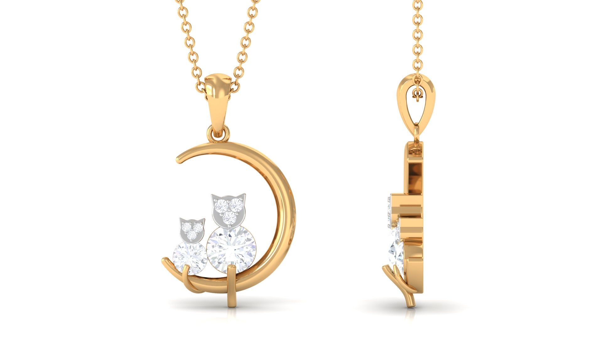 This Cat on Moon Pendant is a charming pendant necklace that will complement your attires effortlessly. Showcases Round Cut Moissanite studded as a cat design, sitting on a crescent moon. The Moissanite Pendant is gracefully crafted with Hallmarked Metal to make an extraordinary gift for her. Grab this Simple Pendant for your close one to give them as a birthday gift.