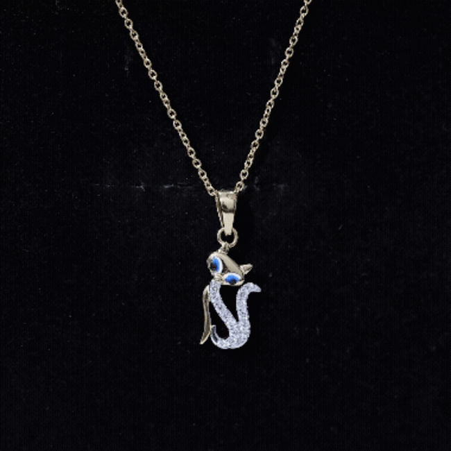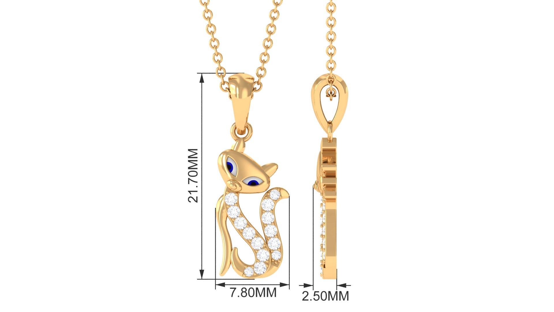 - Cat-inspired pendant design with moissanite accents.