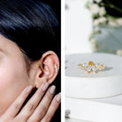 Certified Moissanite Cluster Crawler Earring for Helix Piercing