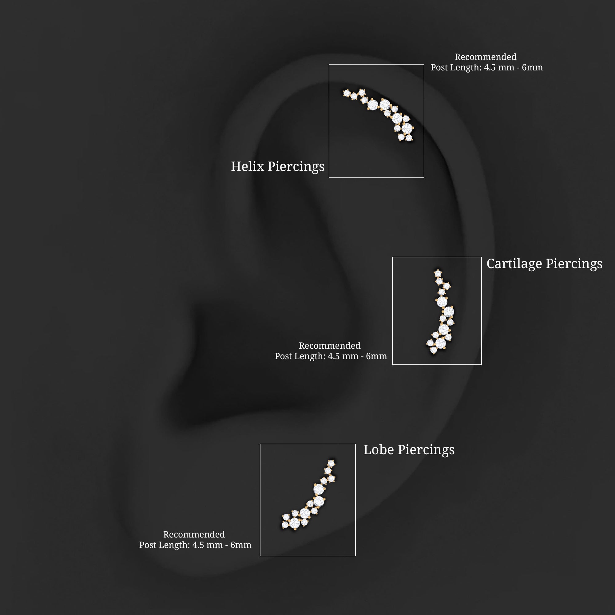 Sparkle that dances along your ear always leaves a lasting impression, and this stunning Ear Crawler Earring is designed to do exactly that. Crafted for those who love jewelry with personality and shine, this piece curves gently along the ear, creating a graceful and eye-catching trail of brilliance. Round cut moissanite stones sit beautifully in prong setting, forming a curved cluster that glows with every movement. The design is elegant yet playful, making it perfect for adding a little magic to your everyday outfits or elevating your look for special occasions. Whether you are dressing up for a party, a romantic evening, or a celebration with friends, this Moissanite Climber Earring adds just the right amount of sparkle. Available in multiple metal options, it allows you to choose a finish that matches your style. The flat back closure ensures a comfortable and secure fit, so you can wear this Moissanite Piercing Earring confidently all day or night. Delivered in a beautiful jewelry box, this Cluster Earring also makes a thoughtful gift for someone who loves unique and stylish accessories.