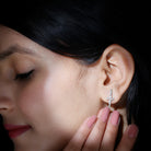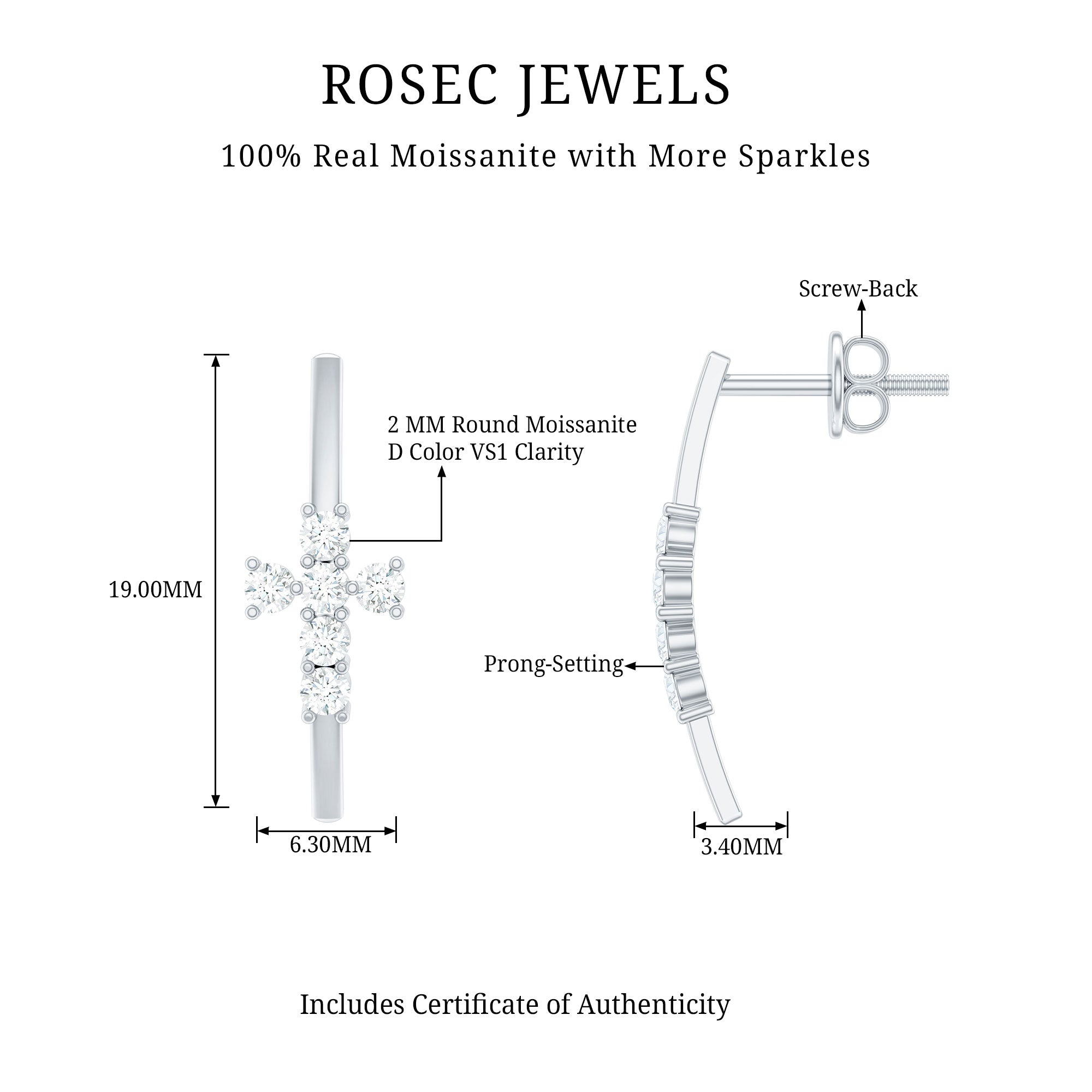 Celebrate your belief with these Moissanite Cross Earrings, crafted with 14K White Gold Plated Silver. The earrings feature Round Shape Moissanite of D-VS1 Quality embedded on the cross frame. These Stud Earrings can be a classic jewelry gift choice for your beloved lady, mother, or sister to embrace their faith and spirituality. These Earrings with Screw Backs will stay on place throughout the day and will be delivered to you in a premium quality packaging securely placed in velvet pouch with the certificate of authenticity.