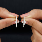 Certified Moissanite Cross Stud Earrings in 14K Gold Plated Silver