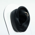 The stunning Moissanite Curved Helix Earring is embellished with Round Cut Moissanites secured in Prong Setting. You can style this Moissanite Earring on your Helix, Cartilage, Tragus, or Upper Lobe Piercing. The curved design is a timeless classic that never goes out of style. Crafted with Hallmarked Gold for a shiny and luxurious look.