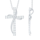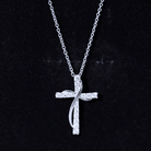 Certified Moissanite Double Cross Pendant Necklace in Silver