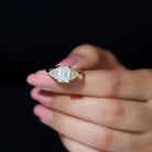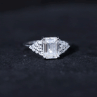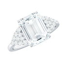 Certified Moissanite Emerald Cut Engagement Ring with Cluster Stones