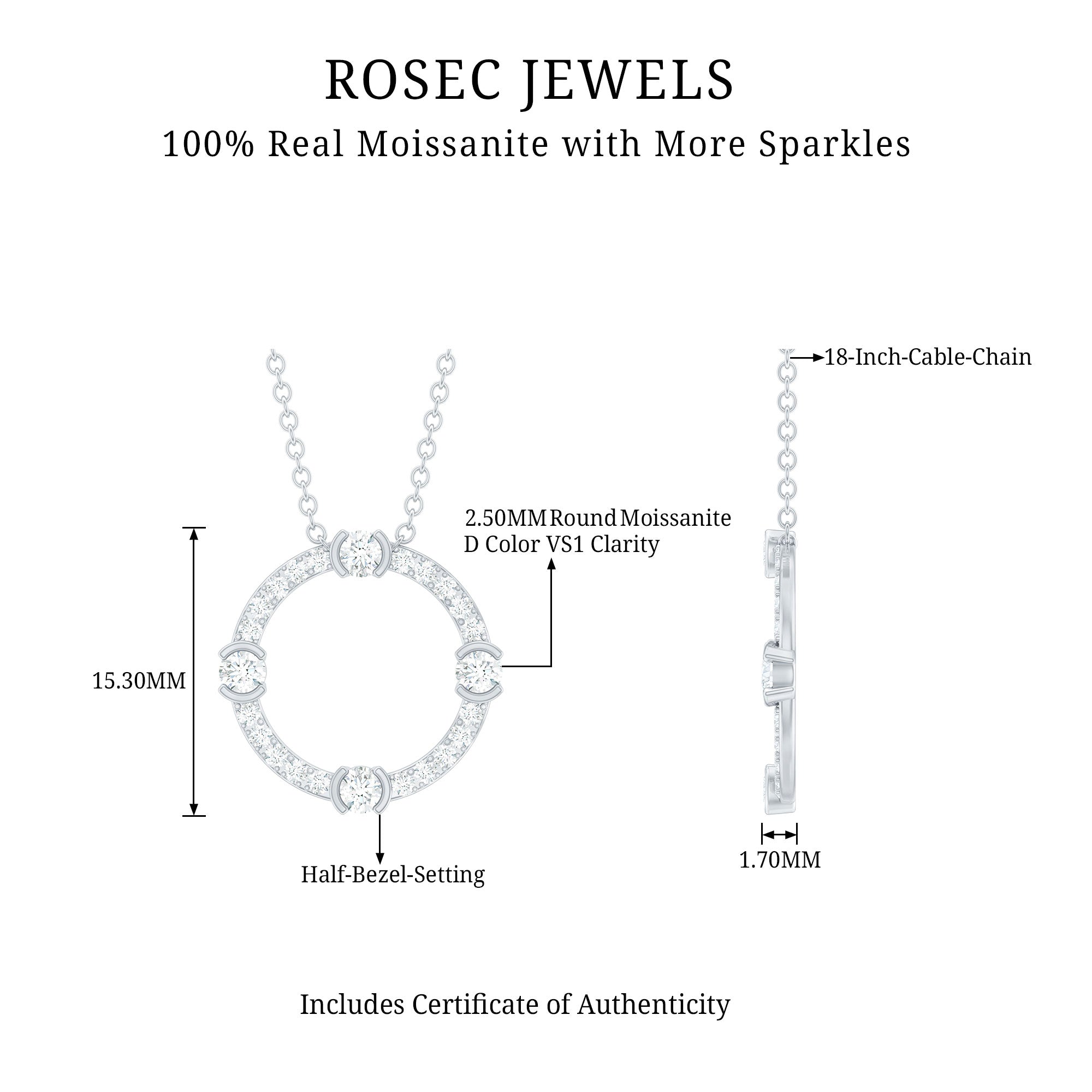 Certified Moissanite Eternity Circle Necklace With Silver Chain