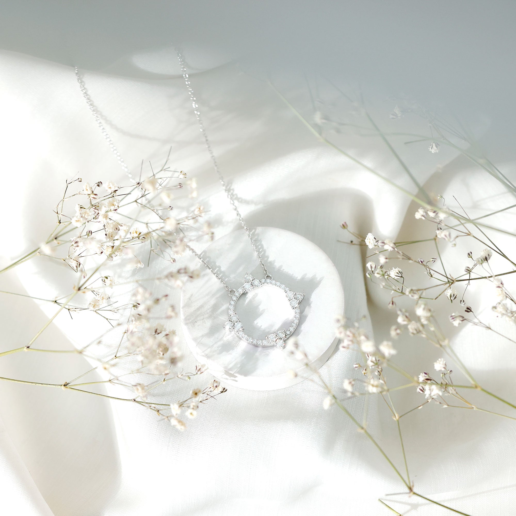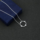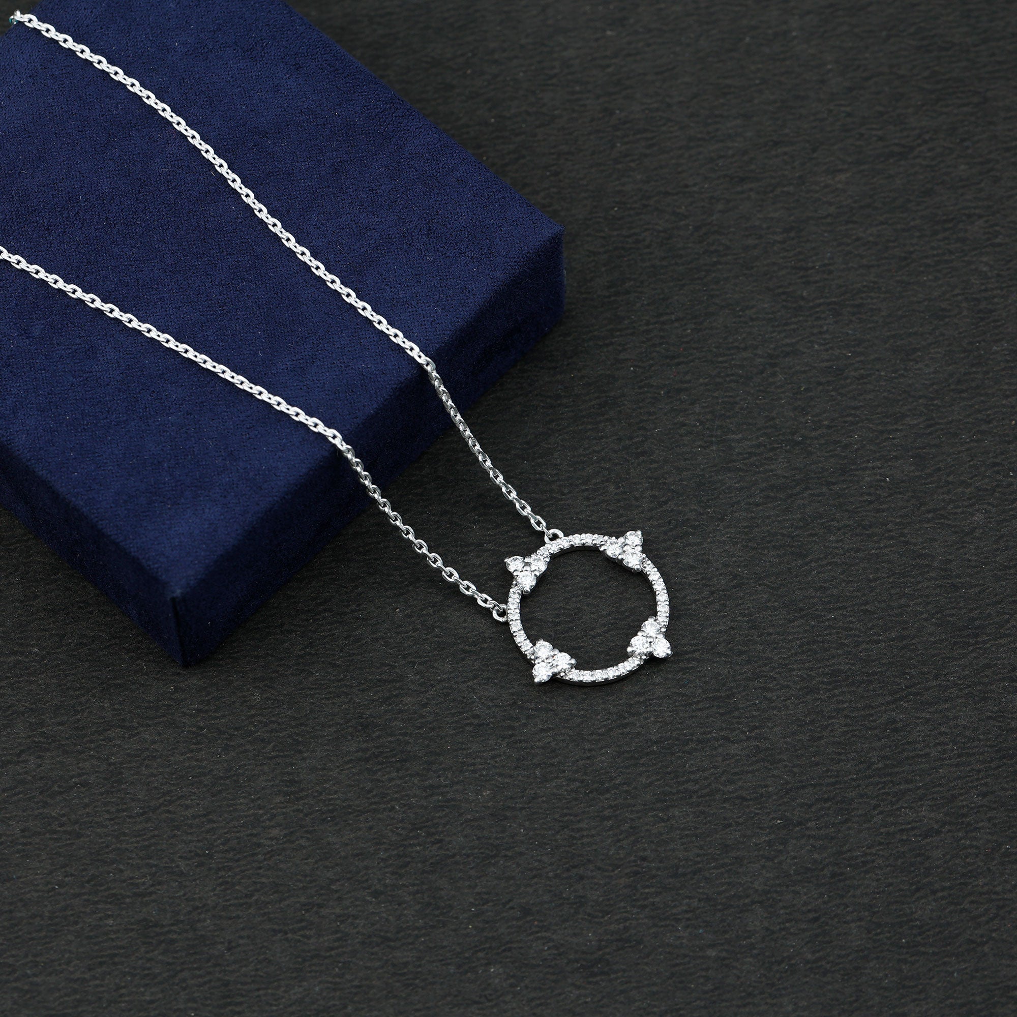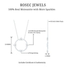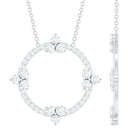 A beautiful circle of moissanite stones represents endless possibilities while also being a striking and elegant addition to any outfit. The Circle of Love Necklace is valued not just for its subtle charm but also for its deep significance of eternal love. Just like a circle has no beginning or end, genuine love is complete and everlasting. Presenting this Round Necklace to a loved one wonderfully expresses your emotions for them. It features prong-set round cut moissanite stones that embellish the circles surface, paired with a cable chain, all made from 14k white gold plated sterling silver. Celebrate your journey of life, love, and eternity with this stunning Moissanite Stackable Necklace, ideal for your dear one. Its timeless elegance will always impress her. A true classic, this Silver Circle Necklace is the perfect everyday accessory.