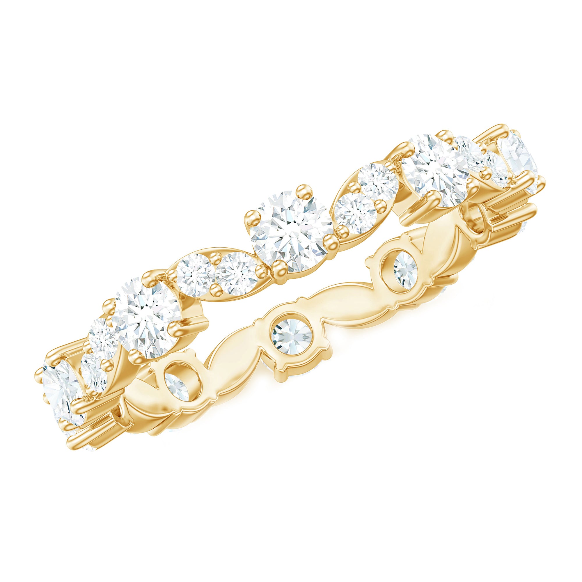 Certified Moissanite Eternity Wedding Band Ring in Prong Setting
