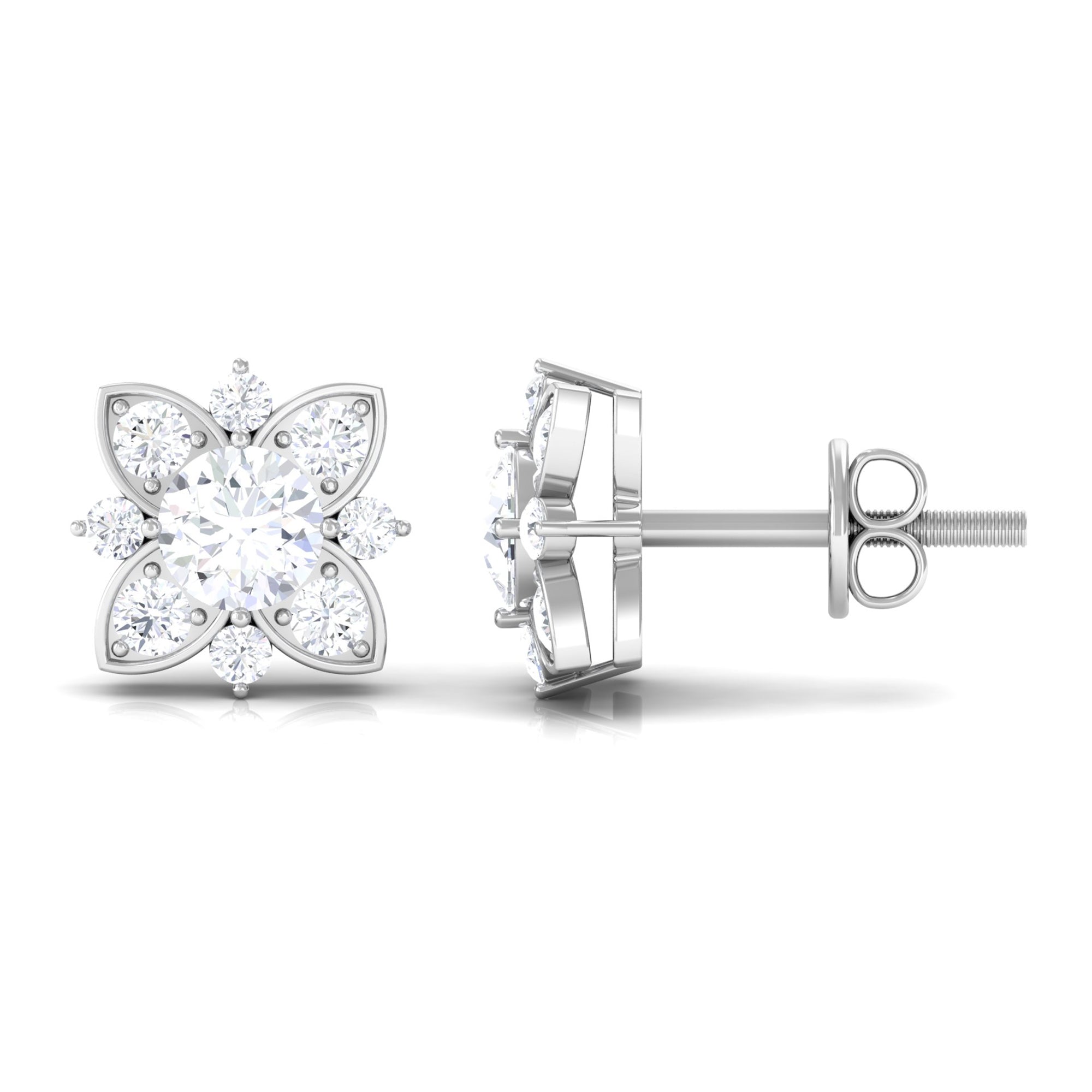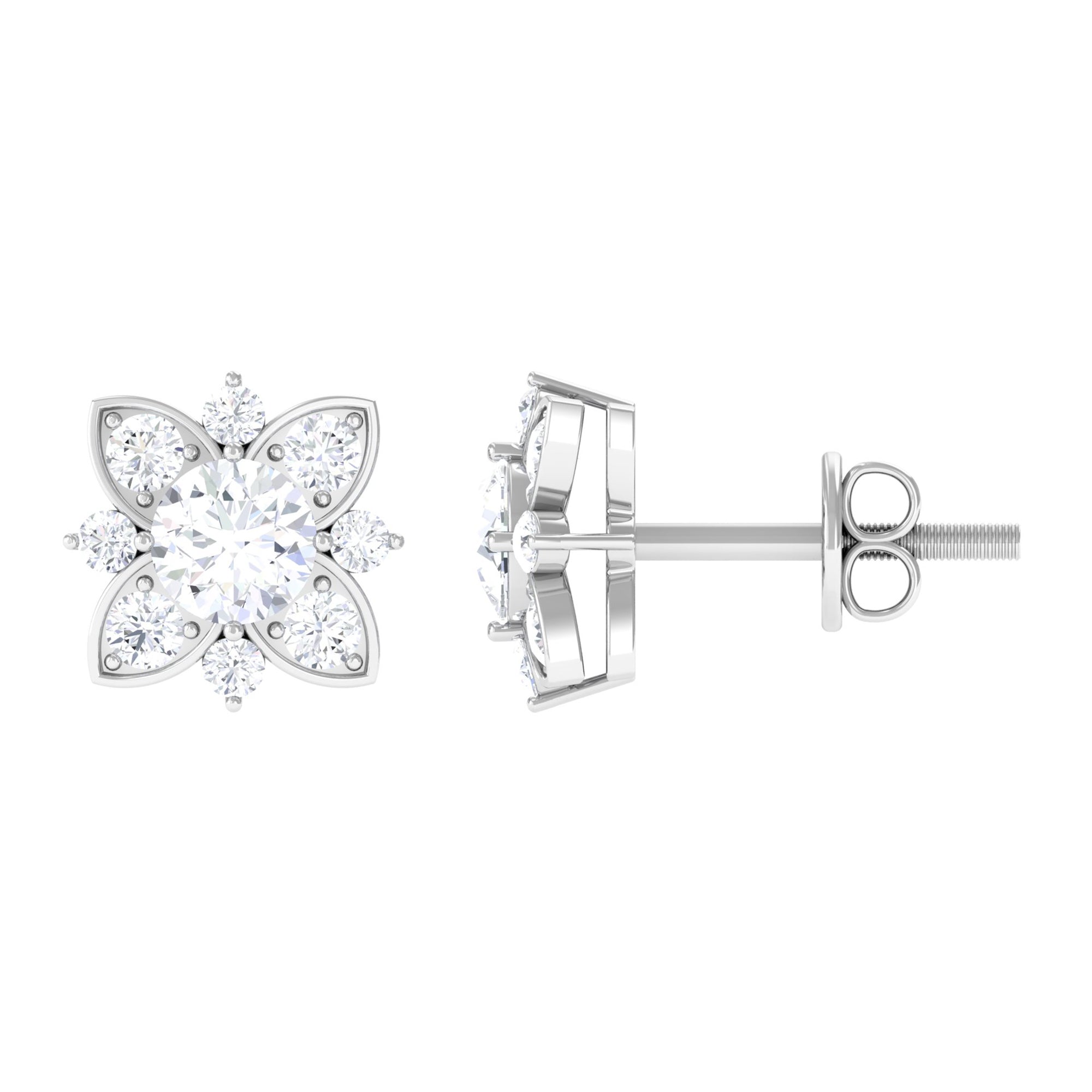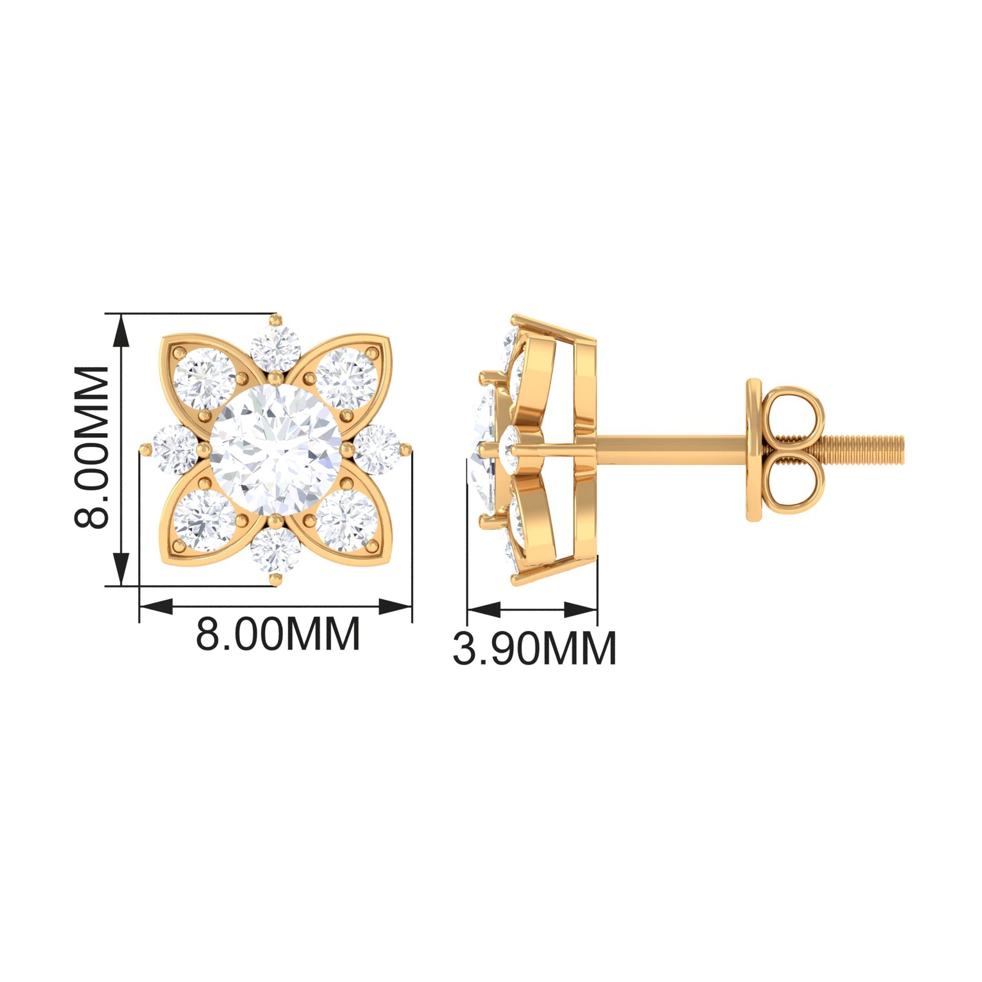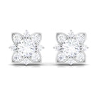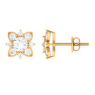 Surprise her with these Certified Moissanite Stud Earrings. Adorned with 4 MM Round Cut Moissanite in Prong Setting in the center that makes a stunning flower design on Classic Floral Earrings. With the perfect Screw Back closure these Colorless Moissanite Earrings also makes a unique present for your loved ones or a perfect treat for yourself.