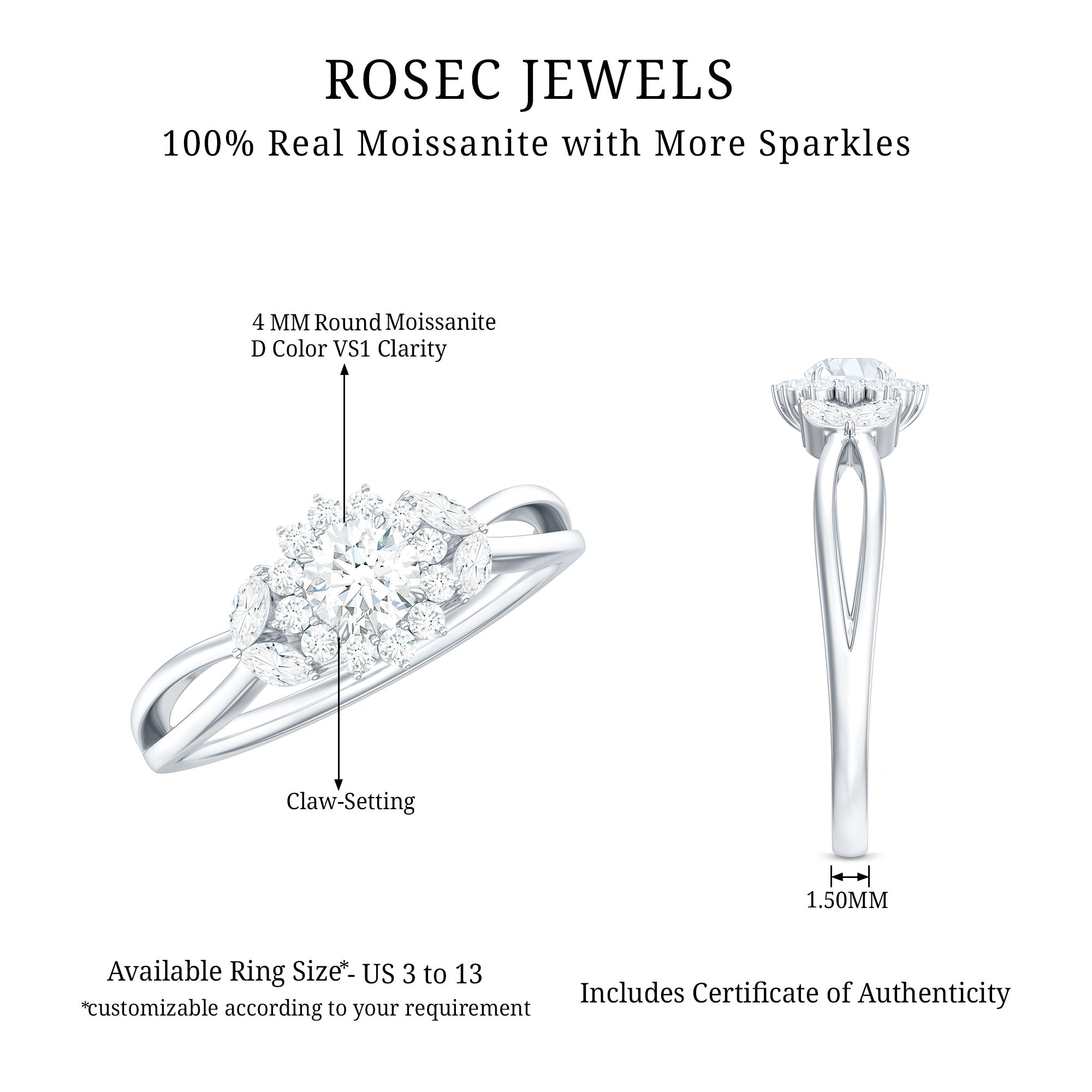 Certified Moissanite Flower Engagement Ring with Split Shank