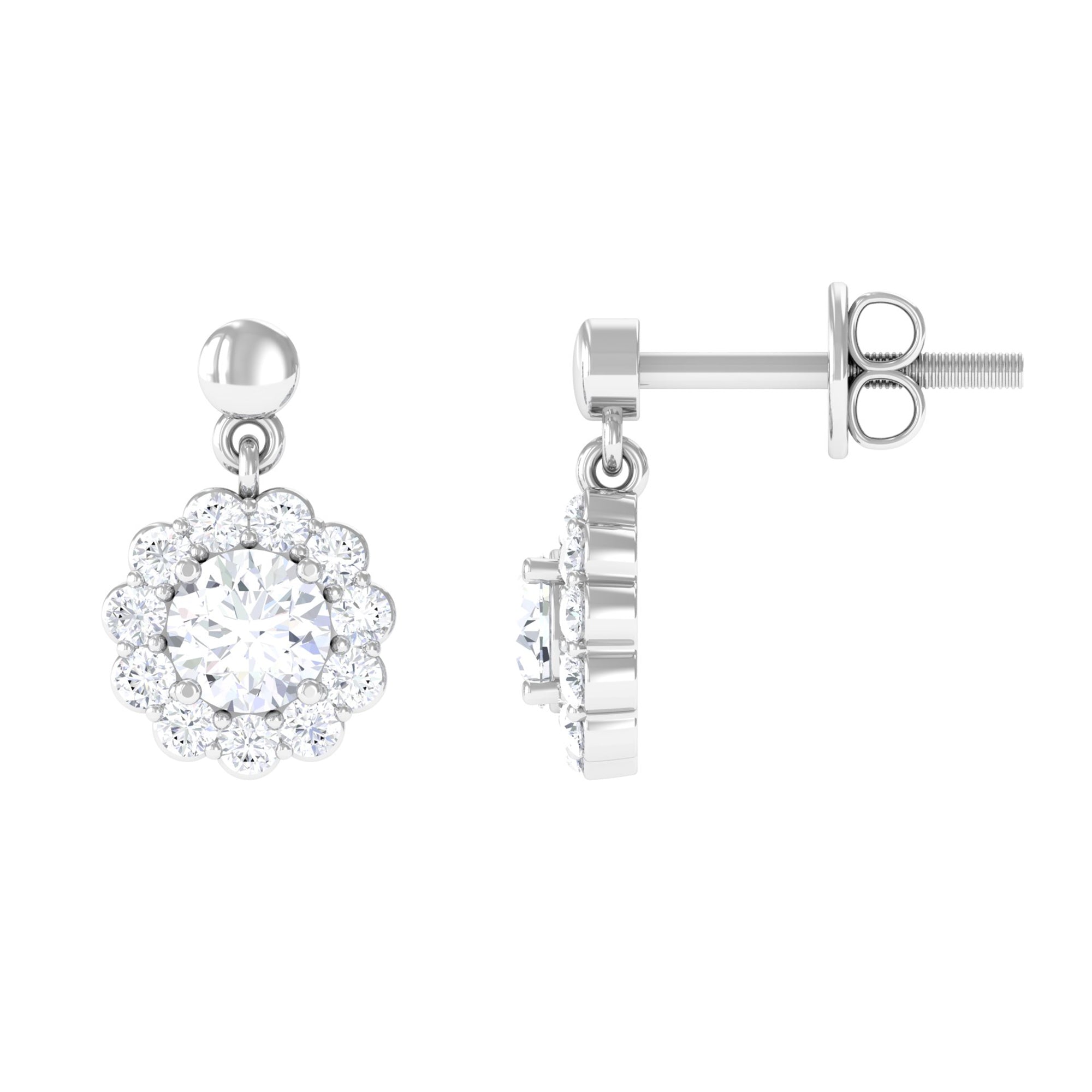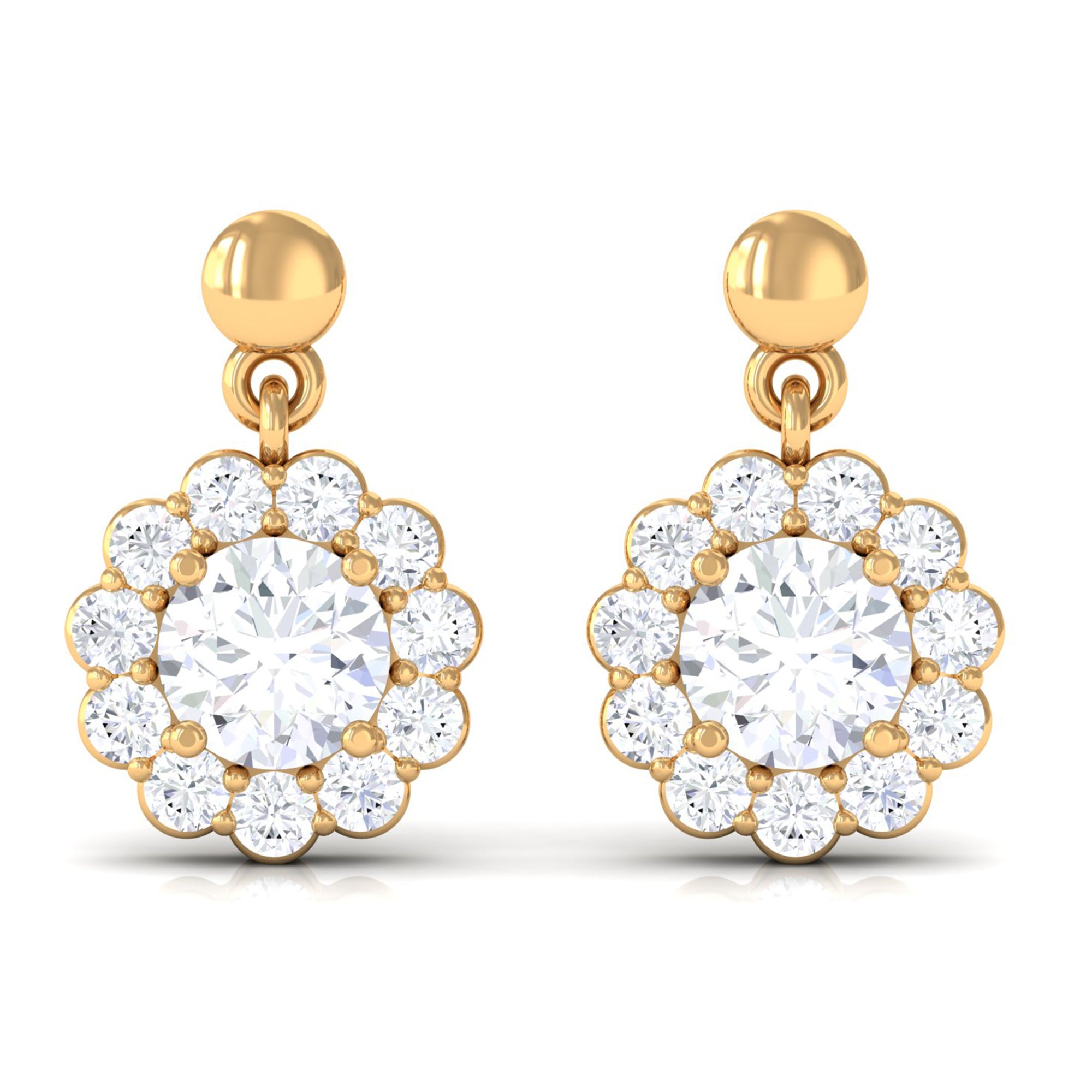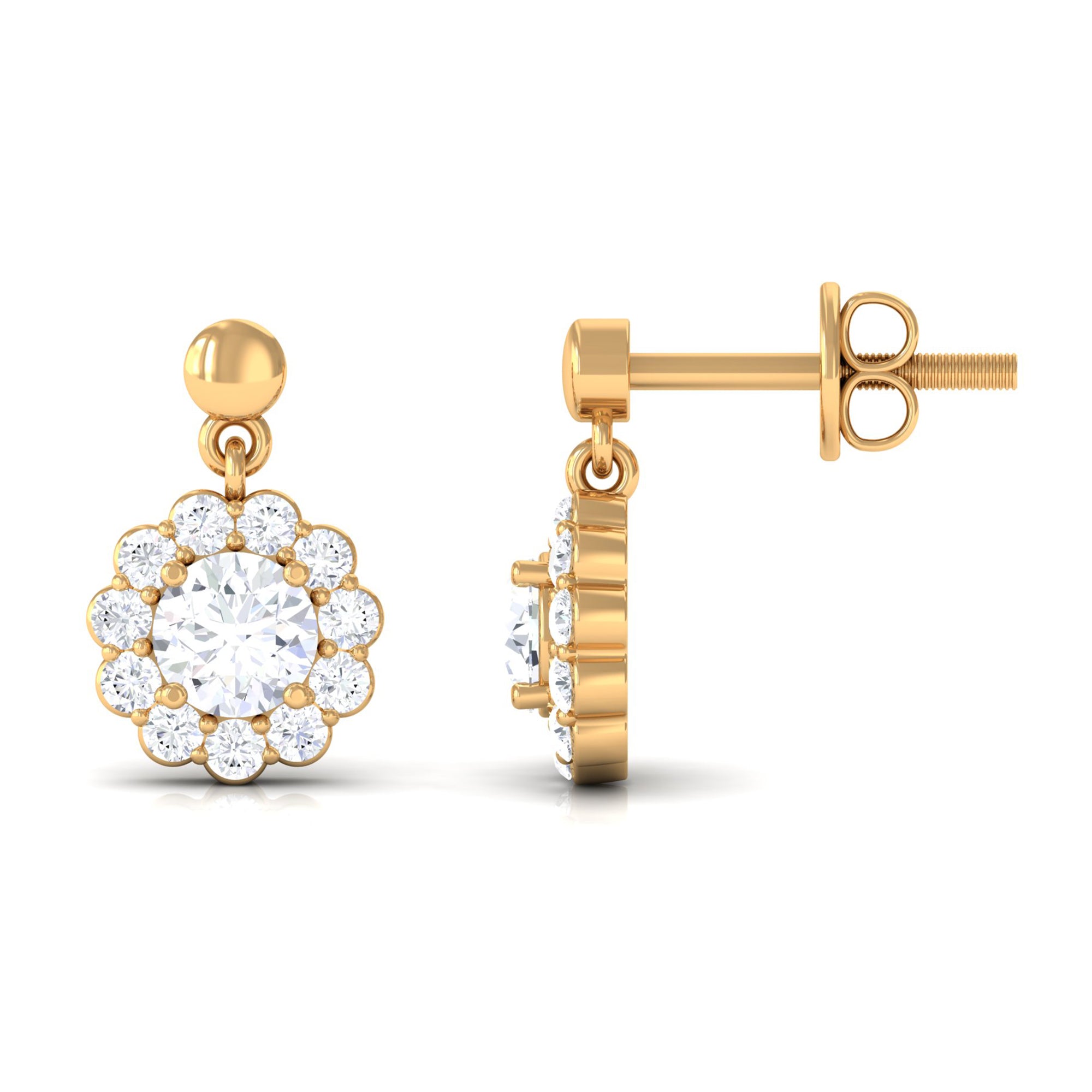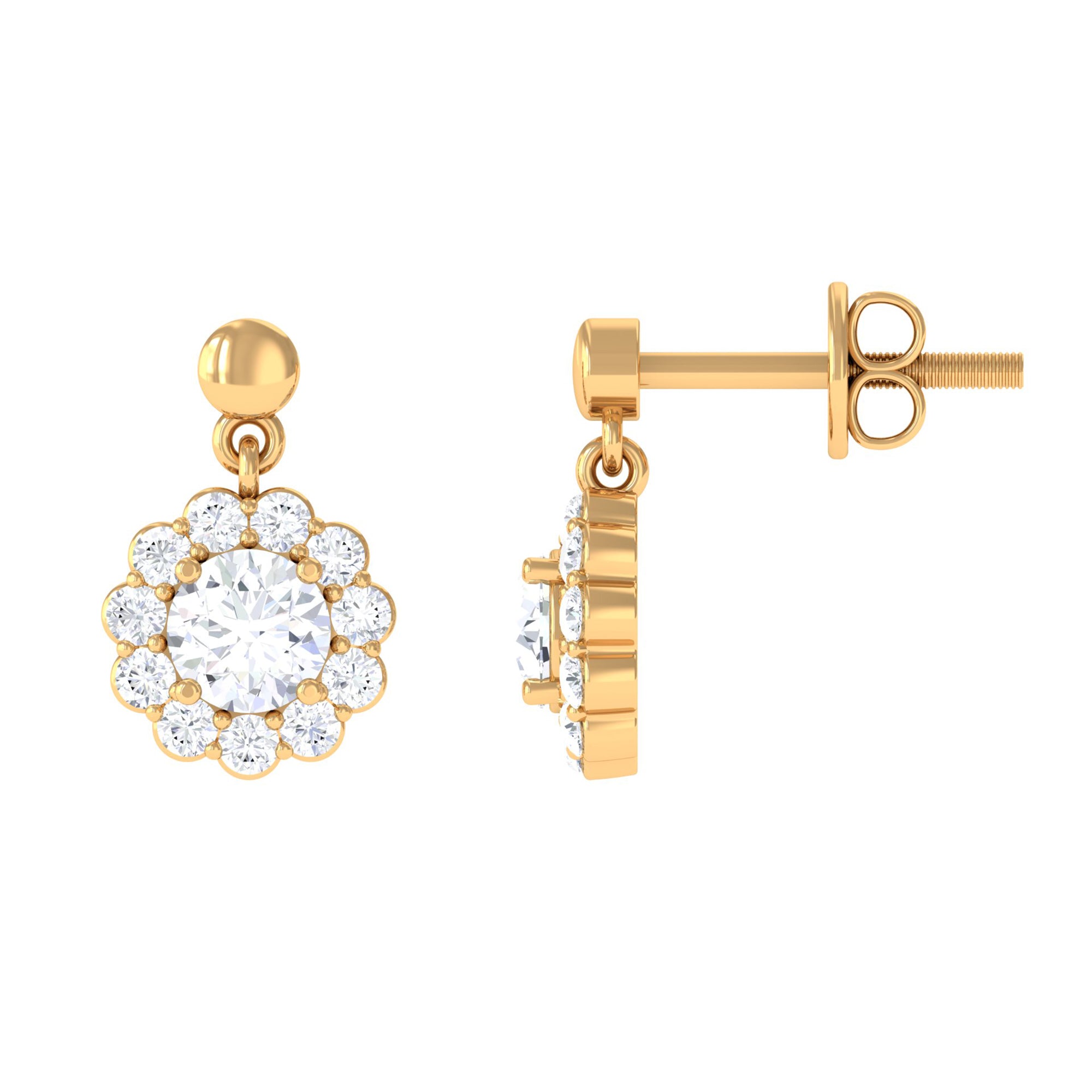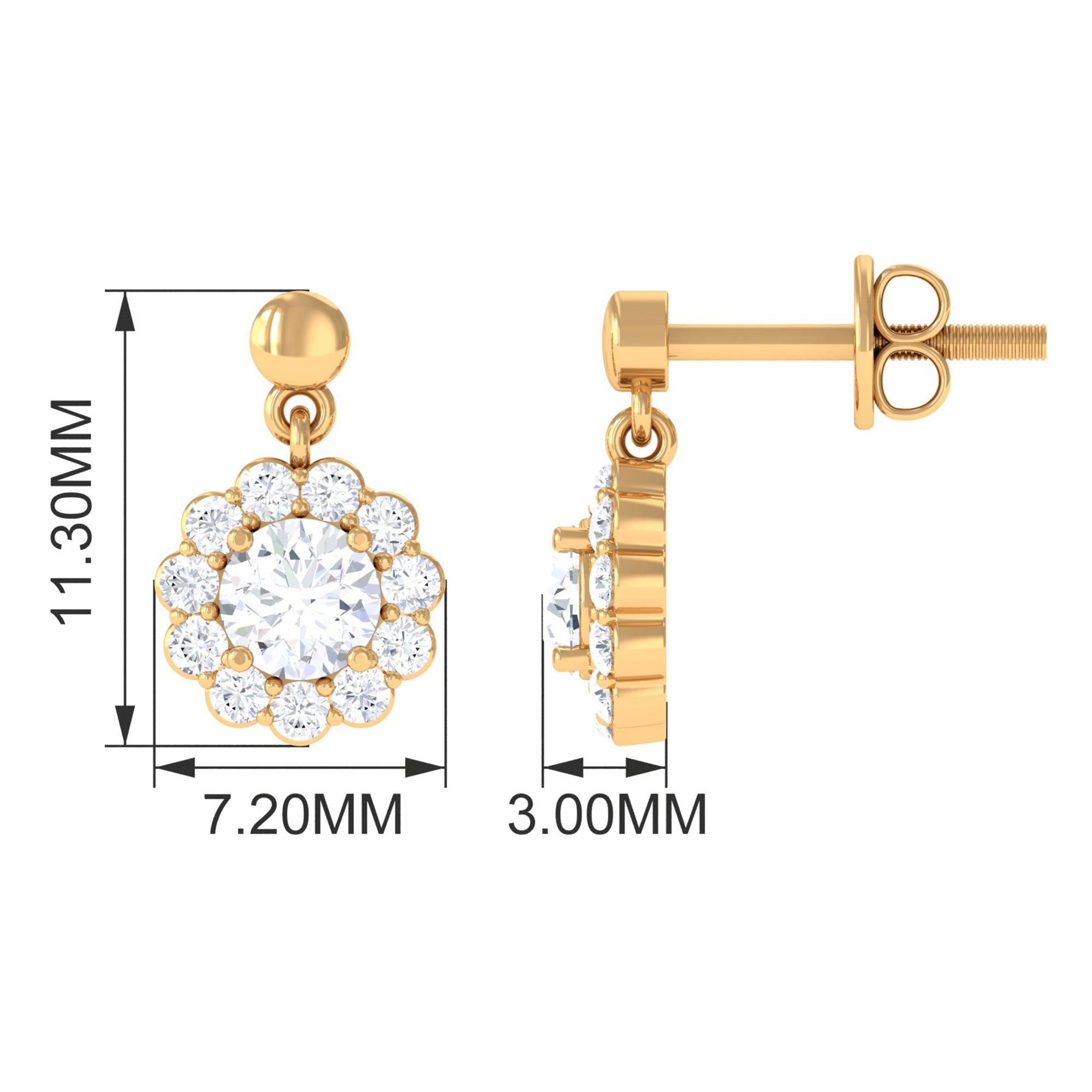These stunning Moissanite drop earrings are the perfect blend of elegance and sophistication. The intricate flower earrings are crafted with care and precision in gold, making them perfect for any occasion. The Moissanite stones are adding a touch of sparkle to these already beautiful earrings. These halo earrings are lightweight and comfortable to wear, making them perfect for everyday wear. The secure screw backings ensure that they will stay in place all day long. They are great for a gift or a treat to yourself.