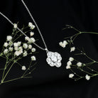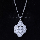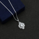 This Moissanite Pendant necklace is the true epitome of beauty, crafted with 14K White Gold Plated Silver. The pendant features a 6X8 MM Oval Shape Moissanite placed at the center in Prong Setting and adorned by a cluster of Sparkling Moissanite stones, and then encircled by a halo of petite stones. This Cluster Necklace exudes the dazzling shine of D-VS1 Quality Moissanite. This Flower Necklace will be delivered to you in premium packaging with the certificate of authenticity.