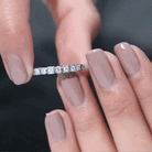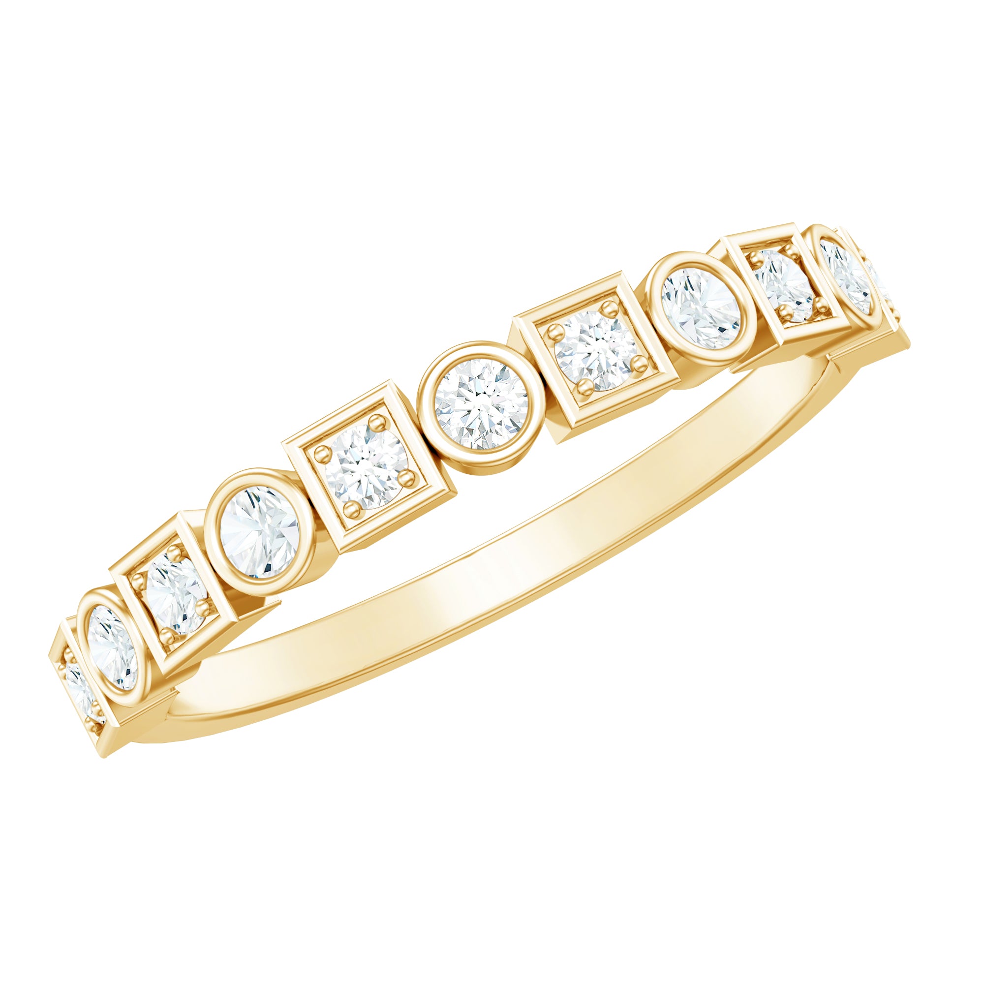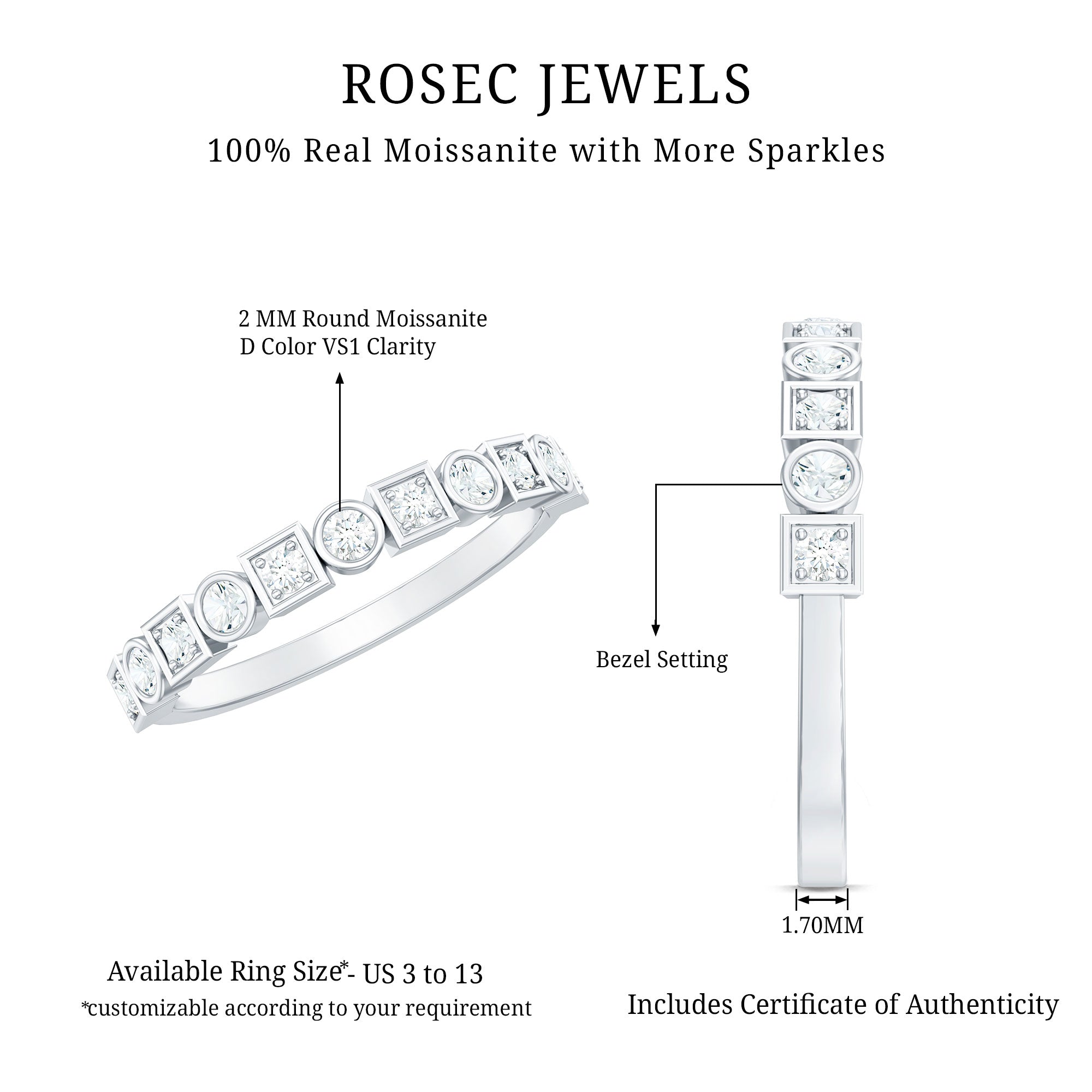 Bold symmetry meets timeless sparkle in this Moissanite Half Eternity Band, a stunning piece that redefines elegance with a modern edge. Designed for the contemporary bride or style-savvy woman, this Stackable Ring features an eye-catching pattern of alternating square and round geometric shapes, each housing a brilliant round cut moissanite that radiates fire and brilliance from every angle. The moissanite stones, known for their D color and VS1 clarity, are ethically sourced and offer a dazzling alternative to traditional diamonds. Each stone is securely nestled in its own geometric frame, creating a mesmerizing sequence of light and form that flows seamlessly across the Eternity Wedding Band. This Moissanite Wedding Band beautifully captures the idea of everlasting love while leaving room for comfort and flexibility. Its stackable style makes it a versatile addition to your jewelry collection, whether worn solo for a minimalist look, paired with an engagement ring, or stacked with other bands for a bold, layered statement. Crafted with attention to detail and designed for both visual impact and everyday wear, this Anniversary Ring is a celebration of individuality and enduring connection.