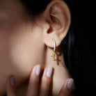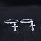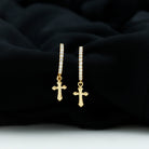 Certified Moissanite Gold Cross Hoop Drop Earrings