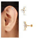 Adorned with Round and Marquise Moissanite set over a floral motif in a prong setting, this Helix Earring is a stunning ear piercing that will add a touch of elegance to your style. Made with Solid Gold Metal, this Flower Earring is perfect for flaunting in your helix, cartilage, or lobe. Whether its for a casual or special occasion, this Helix Jewelry will complement any attire.
