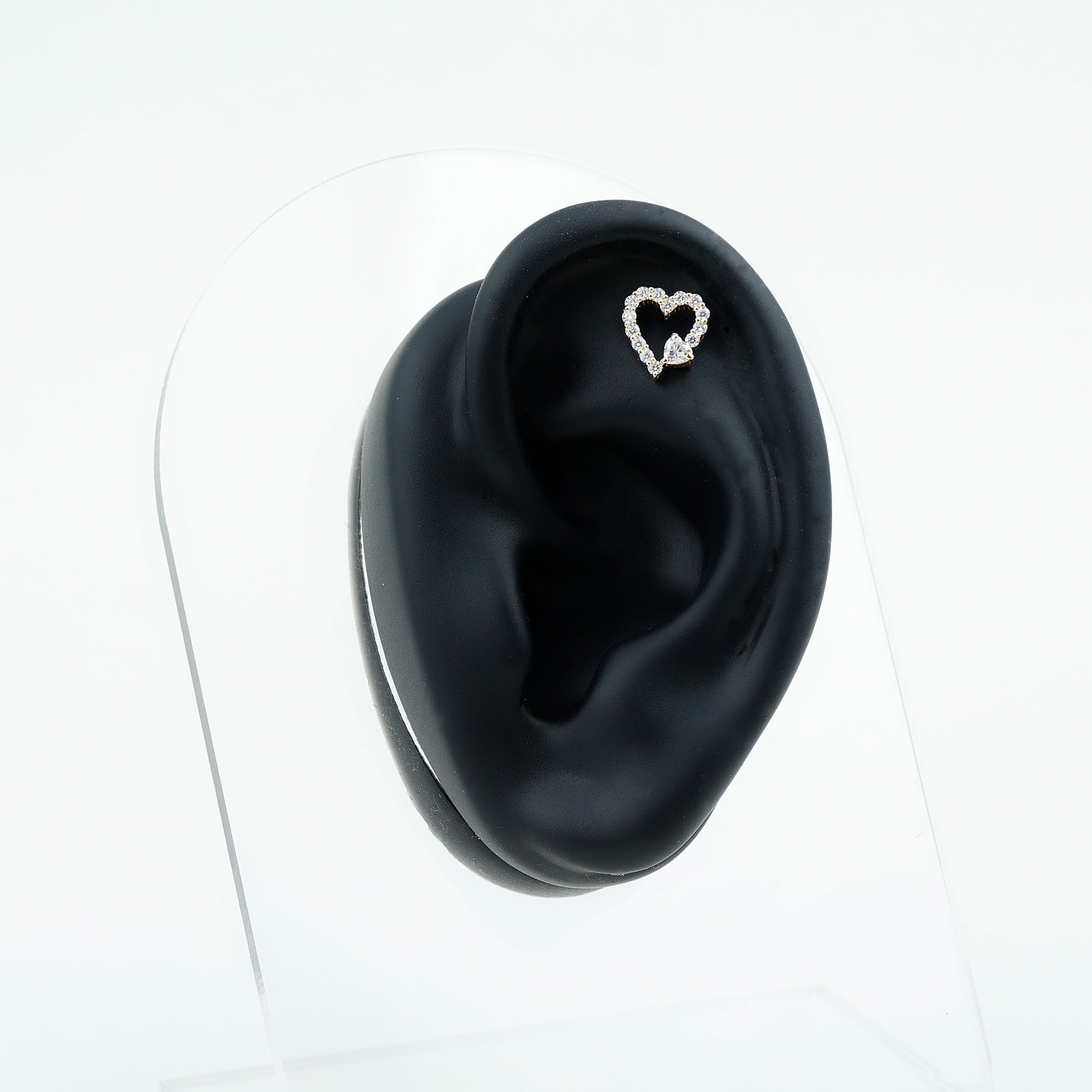 Get this forever fashionable, Moissanite Gold Heart Cartilage Earring adorned with Heart and Round Shape Moissanite assembled in a cute heart design. This Heart Earring can be worn on your Tragus, Helix, Cartilage, or Upper Lobe Piercing. Amaze your loved one with this Cute Earring and wait for her priceless reaction.
