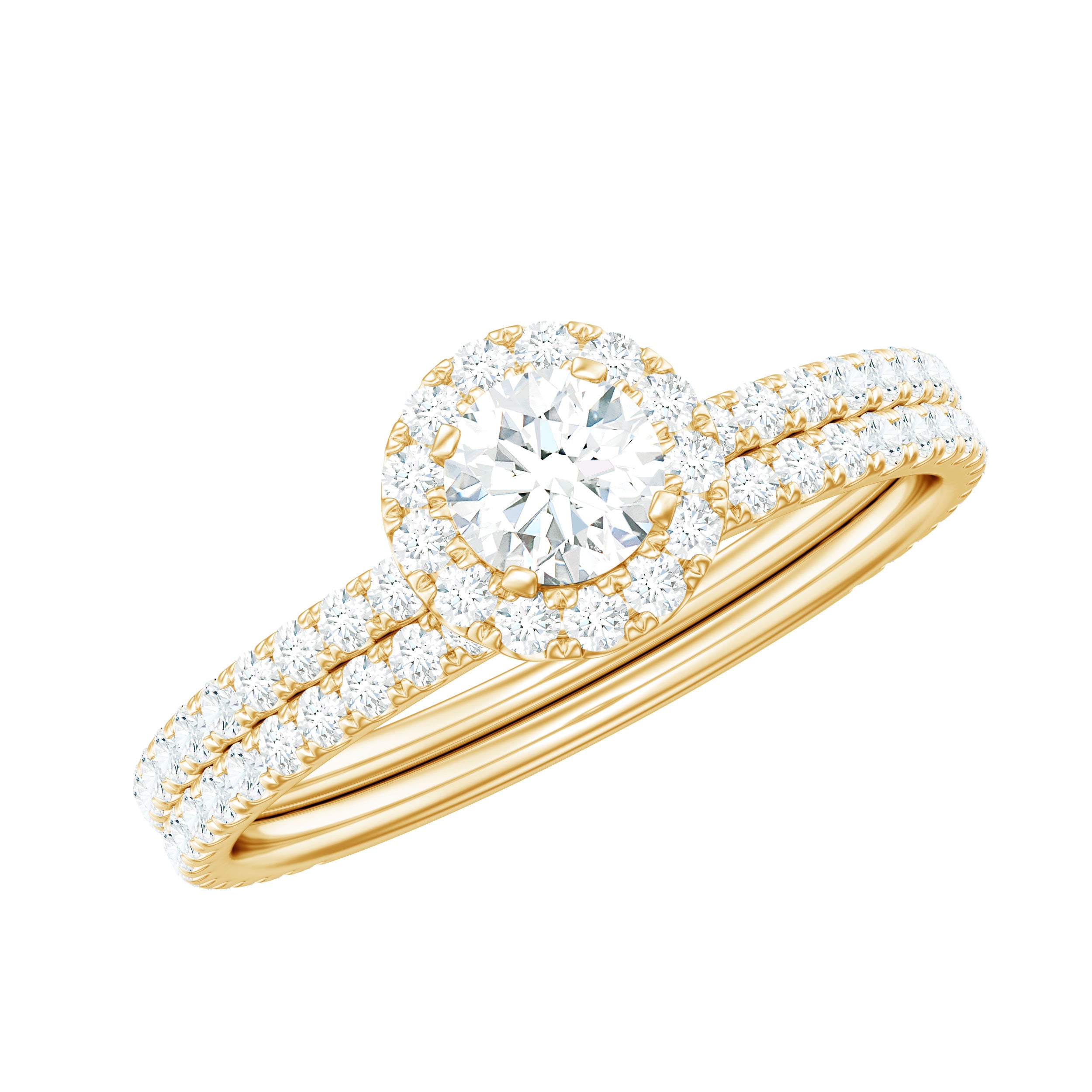 Certified Moissanite Halo Bridal Ring Set