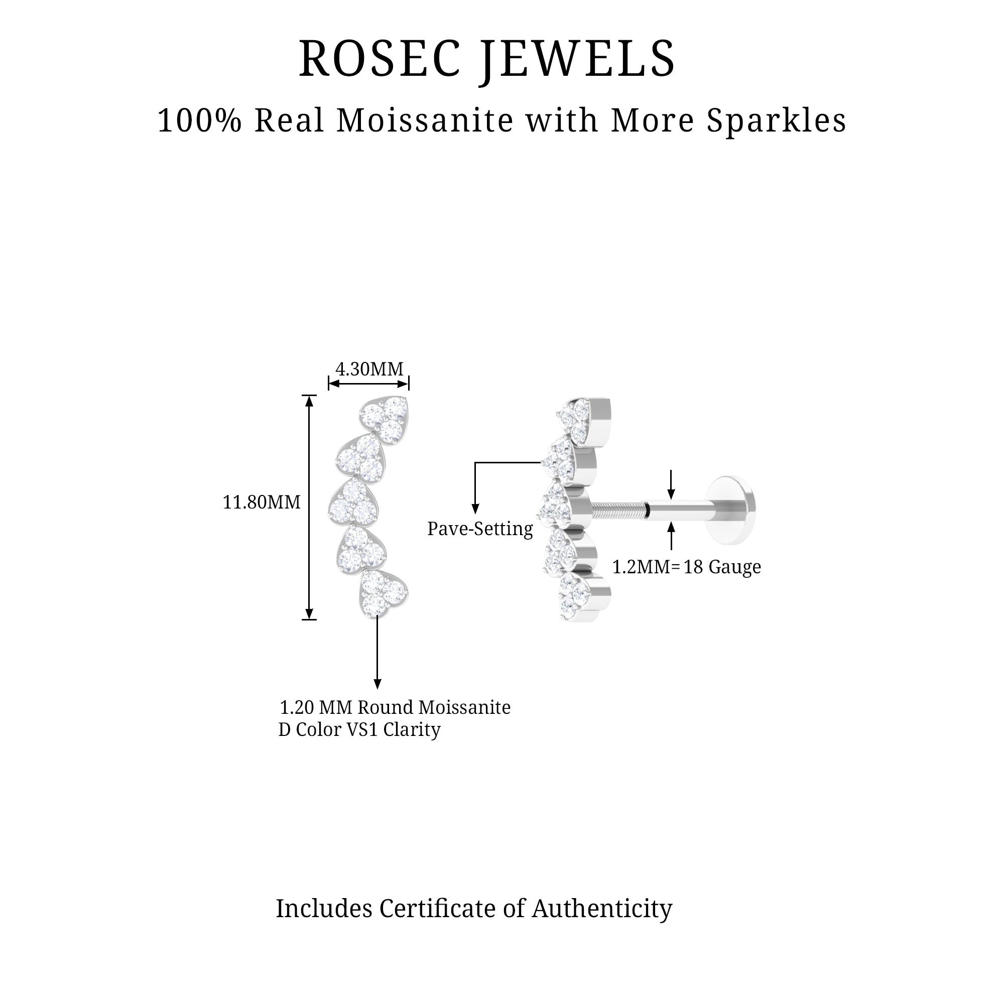 Elevate your look with this stunning Moissanite Heart Climber Earring adorned with Round Cut Moissanite in Pave Setting. It arrives ready to gift in a Signature Box and features a Flat Back Closure to keep it securely in place on your Helix, Cartilage, or Upper Lobe Piercing. Ideal for a special occasion, this Curved Cartilage Earring makes a perfect gift for your loved ones.
