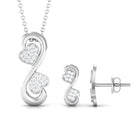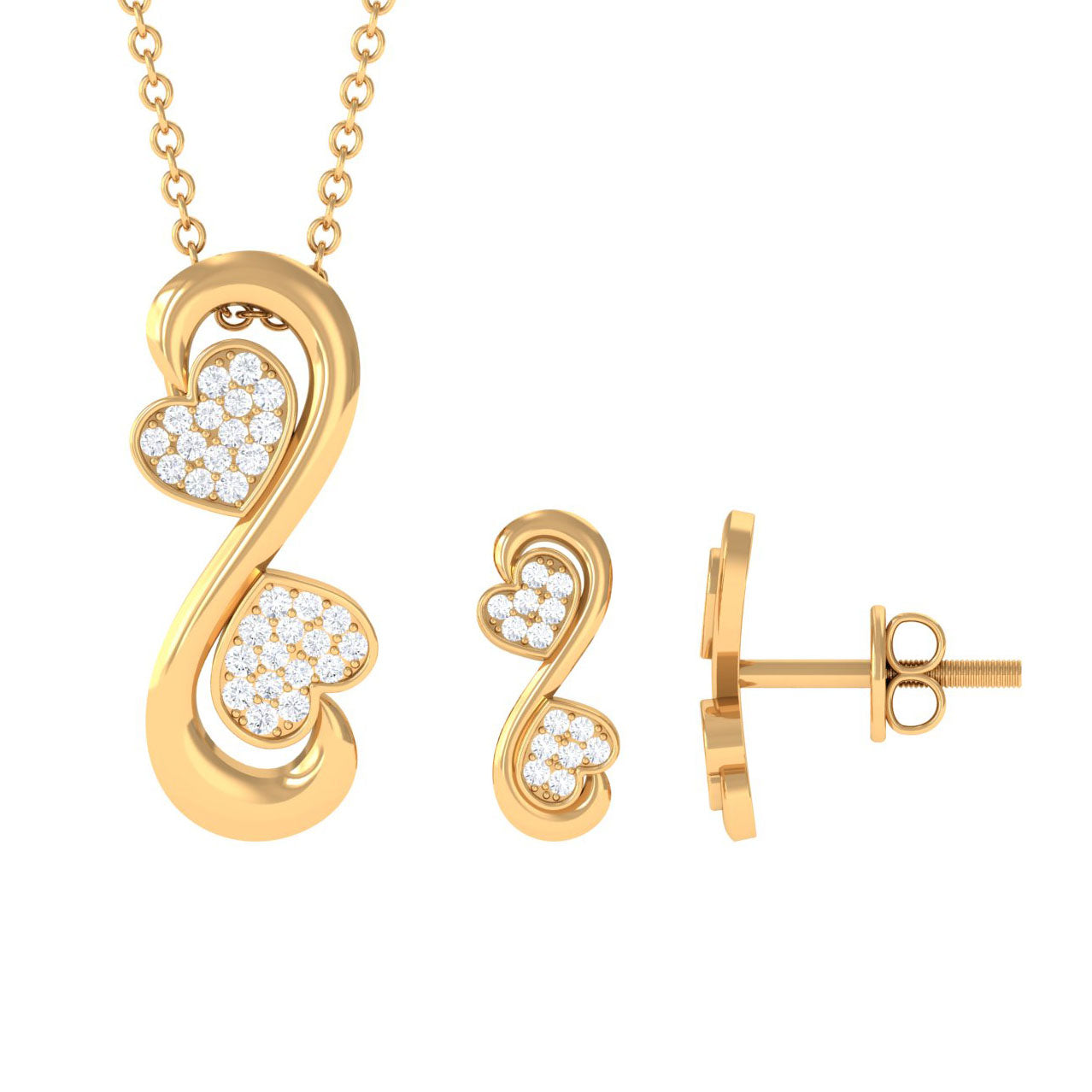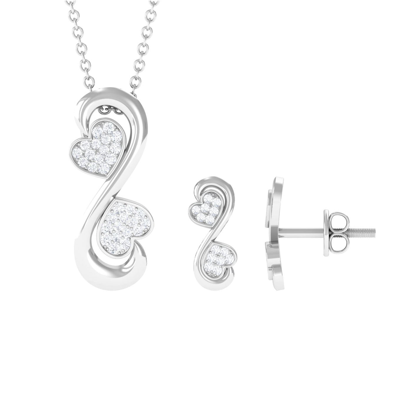 A symbol of everlasting love, this stunning jewelry set features sparkling moissanite in a heart-shaped infinity pendant and matching stud earrings. Both the pendant and earring come in a pave setting. The stud earrings feature the same heart-shaped infinity design, with a smaller moissanite gemstone in each earring. This set is perfect for those who want a matching jewelry set that is both stylish and meaningful.