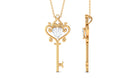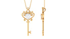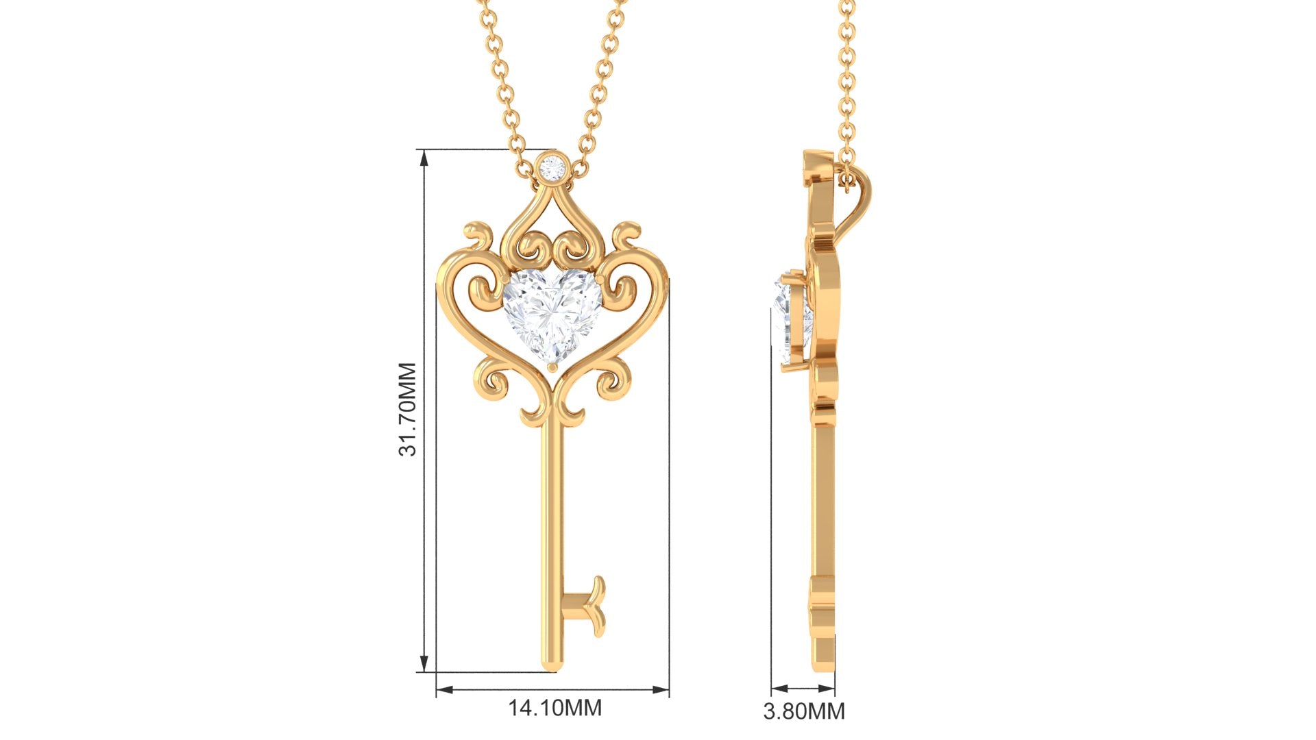 Rosec Jewels stunning Key Pendant Necklace is designed with timeless elegance, making it a standout piece in any collection. At its center, a sparkling 7 MM heart shaped moissanite of D-VS1 quality set in secure prong setting, surrounded with unique filigree patterns, gives the Key Locket a royal and dreamy look. A dainty round moissanite is set in bezel setting at the top, adding a little more sparkle to the overall design. The hidden bail allows for a seamless and floating appearance, while the Moissanite Pendant Necklace dangles gracefully on your neckline. Presented in a premium box, its the perfect choice for a moment youll cherish forever.