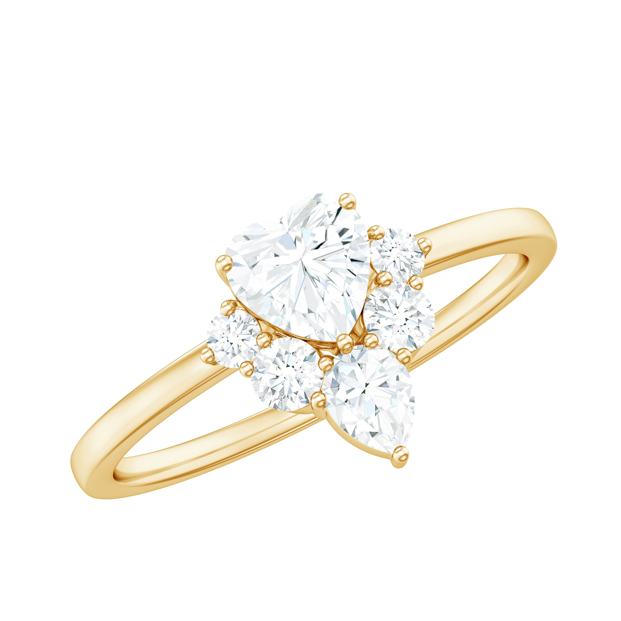 Capture her heart with this exquisitely designed Heart Shaped Moissanite Ring, a perfect symbol of love, devotion, and timeless elegance. Whether you are planning a romantic proposal or marking a special milestone, this beautifully handcrafted ring is sure to leave a lasting impression. At its center sparkles a dazzling 5 MM heart shaped moissanite set in prong setting. Elevating the design is a delicate half halo of pear and round cut moissanite stones, gracefully framing the center stone and adding depth and dimension to the overall look. The blend of shapes creates a harmonious fusion of classic charm and contemporary flair, ideal for the modern woman with a love for timeless beauty. The band is thoughtfully crafted for all-day comfort and durability, ensuring it feels as good as it looks. Available in a variety of metal types and colors, this Heart Promise Ring is offered in US sizes 3 to 13, making it easy to find the perfect fit. Presented in a luxurious signature jewelry box and accompanied by a gemstone certificate, this Moissanite Promise Ring for Her makes a heartfelt gift for proposals, anniversaries, or simply celebrating your unique love story.