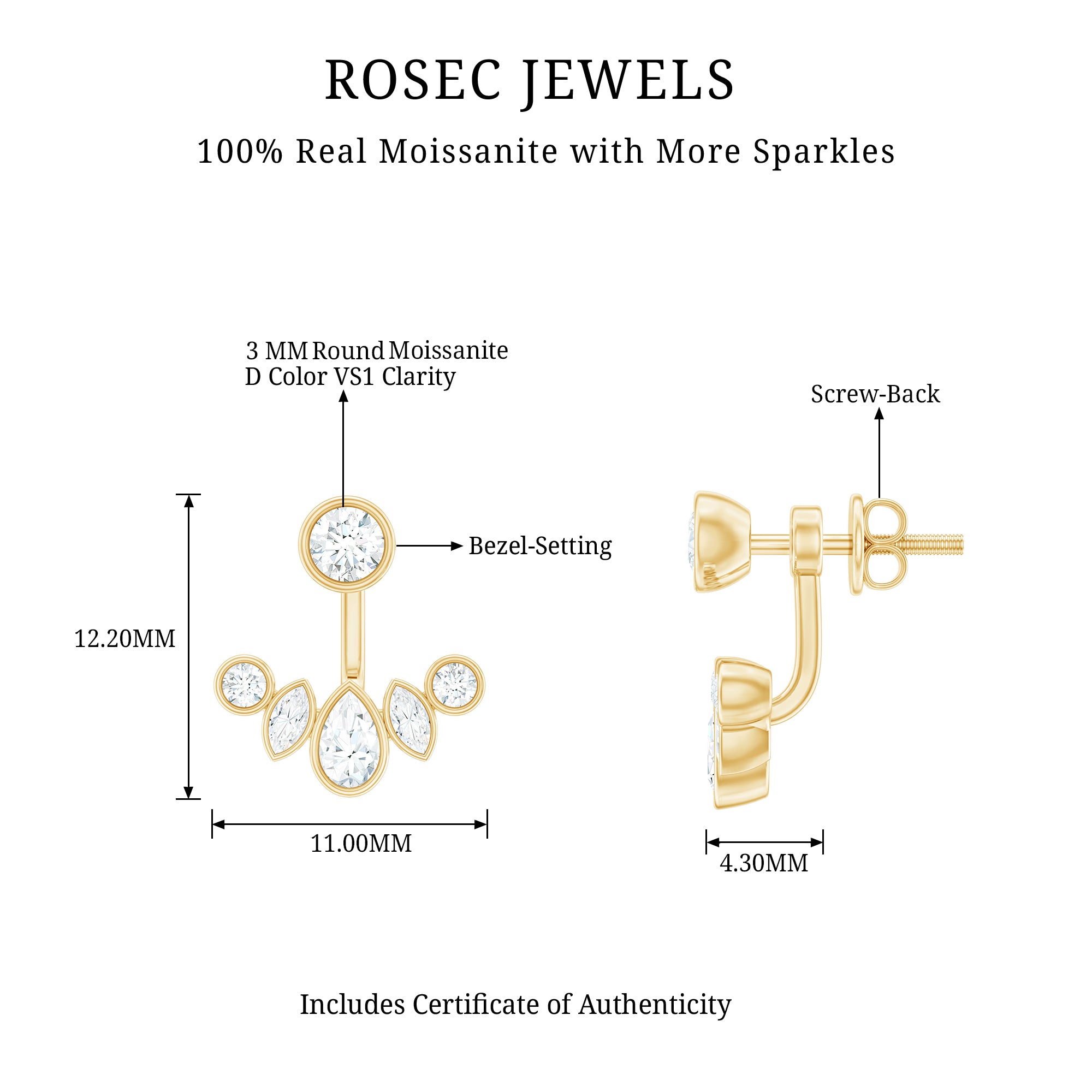 Complement your style with these shimmering Moissanite Jacket Earrings, designed to bring a luxurious touch of sparkle to every moment. Crafted in Yellow Gold Plated Silver, these Fine Earrings feature a versatile two piece design, a brilliant Round Moissanite Stud paired with a dazzling Jacket adorned with Pear, Marquise and Round Shaped Moissanite stones set in Bezel Setting. Together, they create a breathtaking piece of jewelry that catches every angle, giving you a look that feels modern, elegant and effortlessly eye-catching. Whether worn with the jacket for a bold, glamorous statement or as simple studs for a more minimal vibe, these Ear Jacket Earrings adapt beautifully to any outfit or occasion. The secure Screw Back Closure ensures both comfort and confidence, letting you sparkle worry-free from day to night. Packaged in a charming jewelry box, these Bezel Set Earrings make a heartfelt gift for Christmas, birthdays, anniversaries or any special moment where you want to celebrate someone with timeless shine. These Moissanite Diamond Earrings are the perfect finishing touch that elevates your style with radiant beauty and endless versatility.
