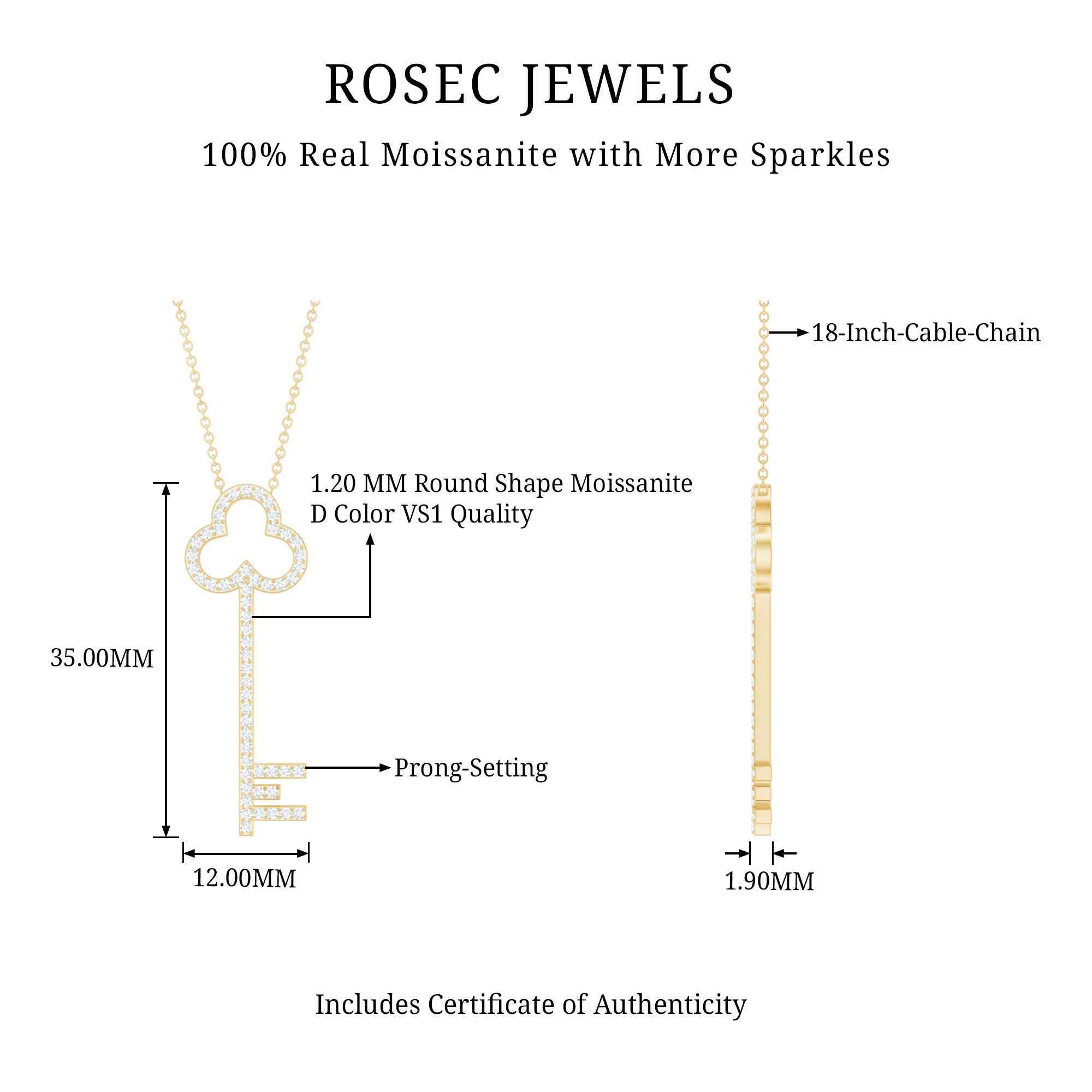 This Moissanite Pendant always inspires you and helps believe in living your dream. This Key Pendant is a way to your success adorned with Round Cut Moissanite in Prong Setting. Add luster to your outfit with this Moissanite Necklace. Perfect jewelry for you or the ones who is close to you.