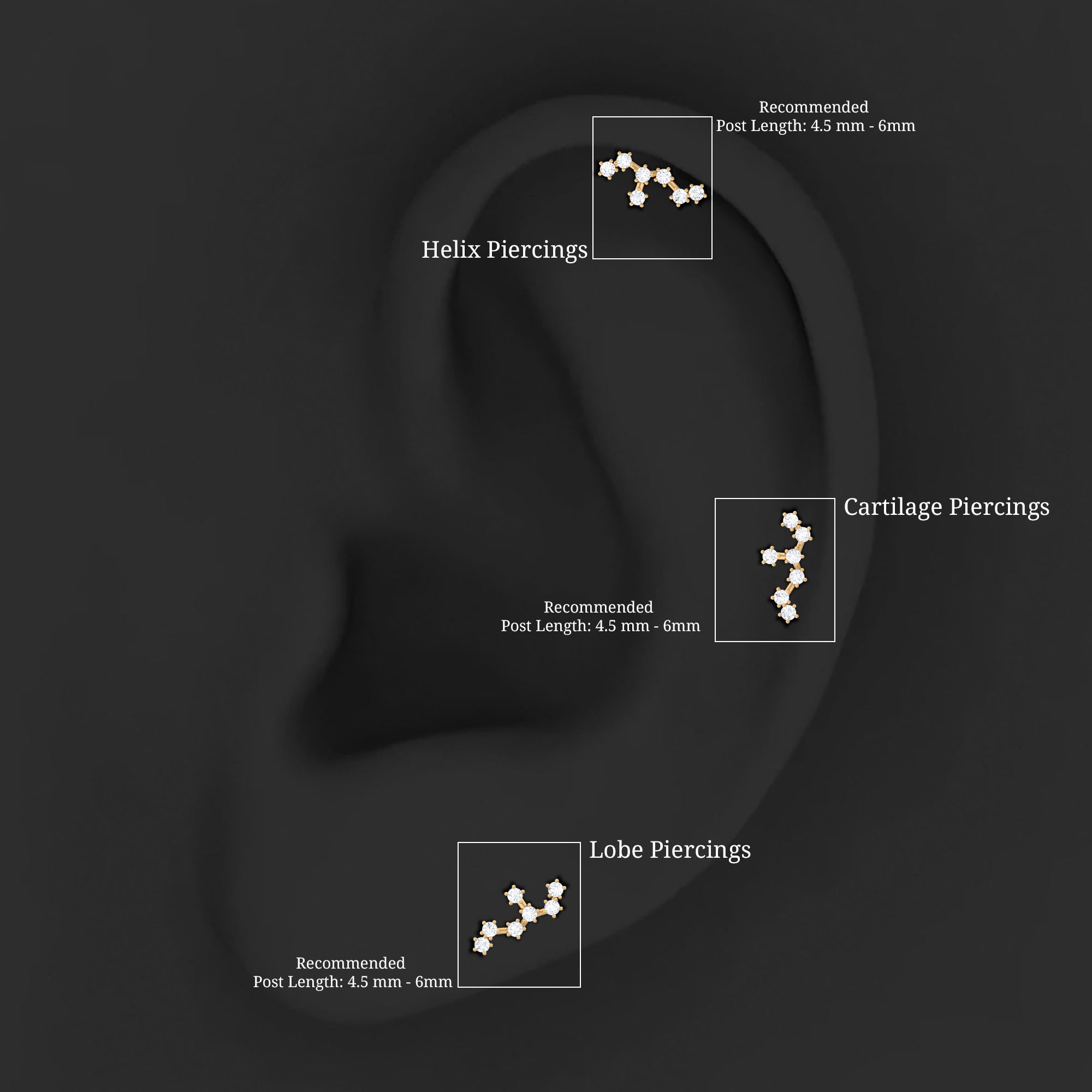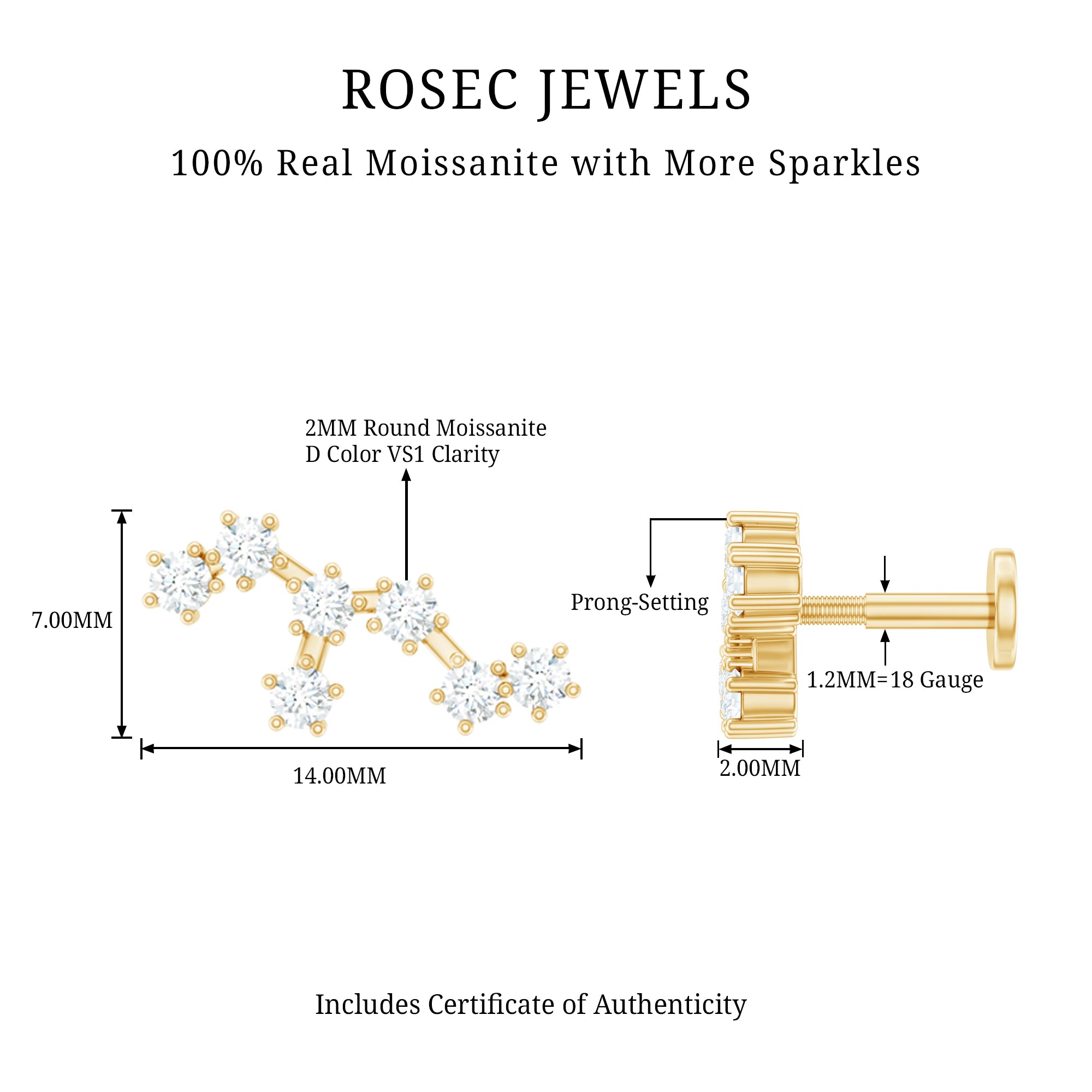 The Leo Zodiac Earring features a stunning star constellation design adorned with sparkling Round Cut Moissanite set in Prong Setting. This Ear Crawler can be worn on your Cartilage, Helix, or Upper Lobe Piercing and is secured in place with a Flat Back Closure. Perfect for any special occasion, this Constellation Earring makes a wonderful gift for Birthdays, Anniversaries, Bridesmaids, Christmas, Graduation, Friendship, and Sisters. The stones are placed carefully so they sparkle with every small movement, adding brightness to your look, whether you are keeping things simple or dressing up for a special moment. It sits gently against the ear, making it easy to wear all day without irritation. Whether you are dressing up for a party, a romantic evening, or a celebration with friends, this Moissanite Climber Earring adds just the right amount of sparkle. Available in multiple metal options, it allows you to choose a finish that matches your style.