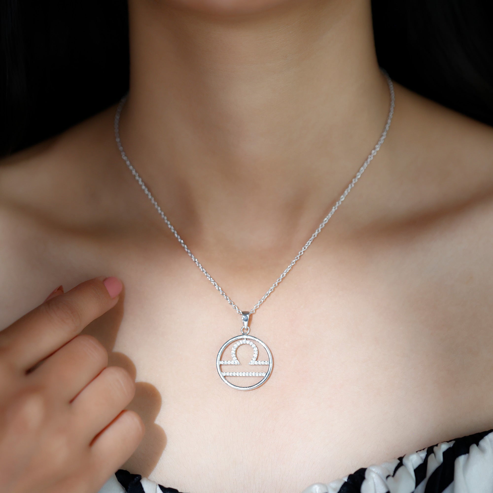 Certified Moissanite Libra Zodiac Sign Pendant Necklace