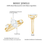 Embrace modern sophistication with this exquisite Marquise Cut Moissanite Engagement Ring, a perfect fusion of timeless elegance and contemporary design. At its center lies a dazzling 5X10 MM marquise cut moissanite, securely prong set to highlight its elongated silhouette and exceptional brilliance. Known for its refined sparkle and graceful shape, the marquise cut adds a romantic, vintage-inspired touch with a bold, modern twist. Enhancing the design is a chic double band, thoughtfully crafted to add depth to the Solitaire Engagement Ring. Two radiant 3 MM round moissanite stones flank the center stone, introducing a layered effect that balances structure with sparkle. The result is a timeless Marquise Engagement Ring that speaks to women who appreciate both classic beauty and trend-forward details. Designed for the woman who values individuality and elegance, this 1 Carat Moissanite Ring promises a lifetime of radiant beauty and modern grace she will cherish forever.
