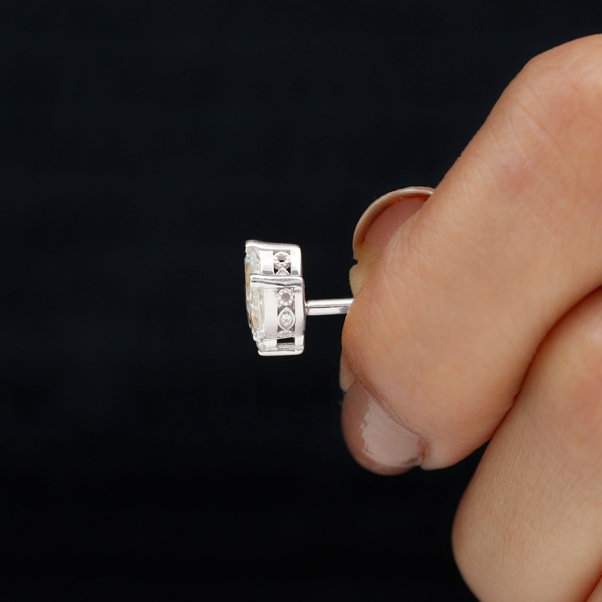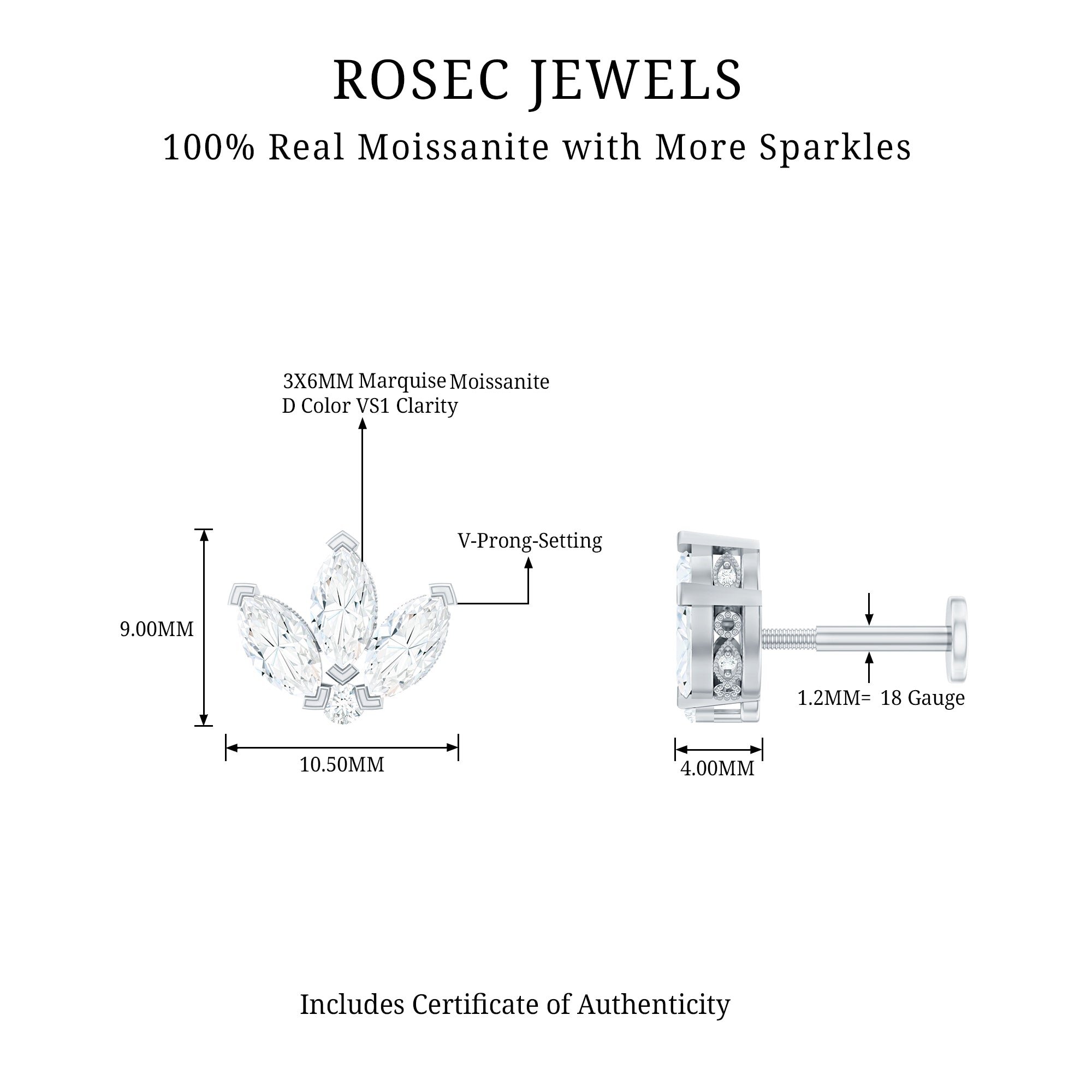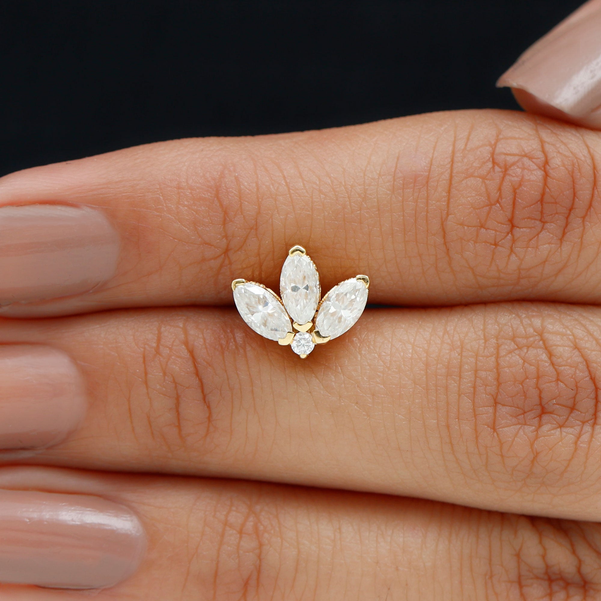 This Moissanite Cartilage Earring is adorned with Marquise Cut Moissanite and Round Cut Moissanite assembled in a Lotus Flower Design. The unique and intricate design of this floral earring adds a touch of sophistication to your look, making it a perfect accessory for any occasion. This Floral Stud can be worn on the Helix, Cartilage, and Lobe Piercing. This Cartilage Stud can paired with other studs or earrings to add a hint of glamour to the normal look.