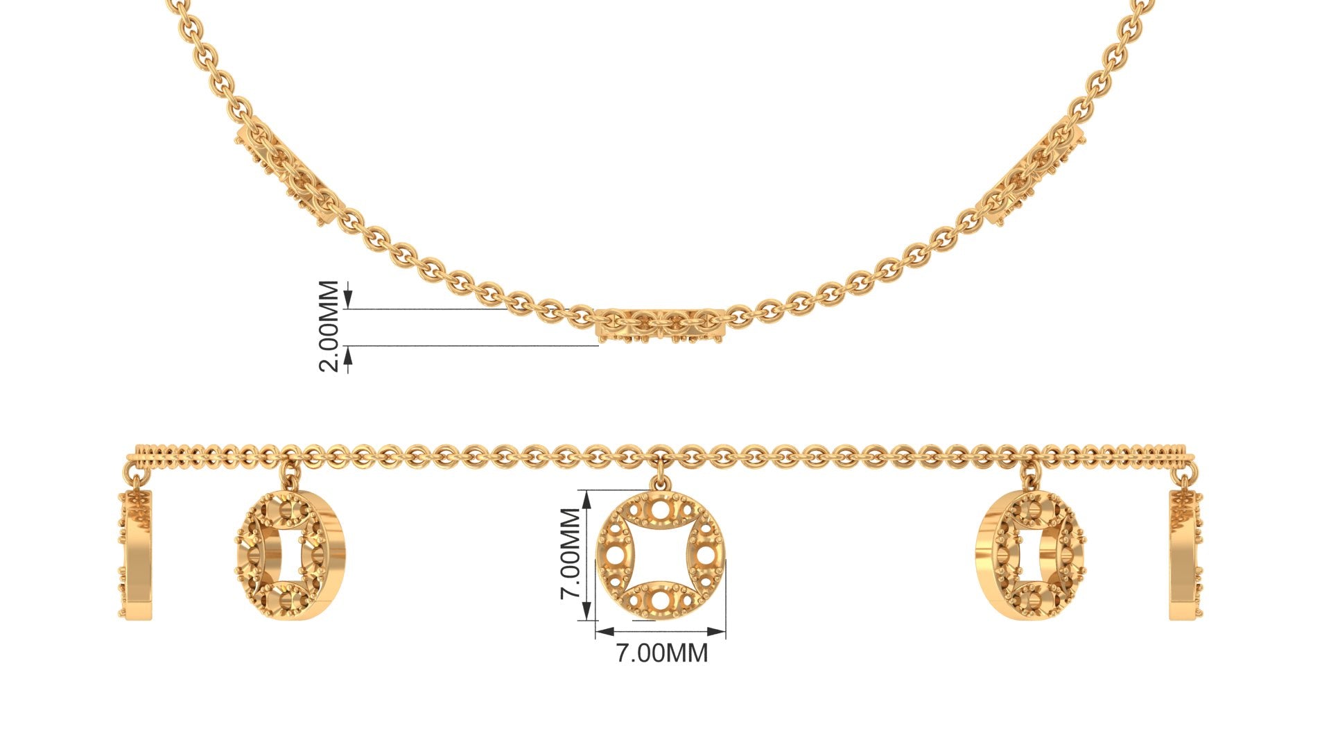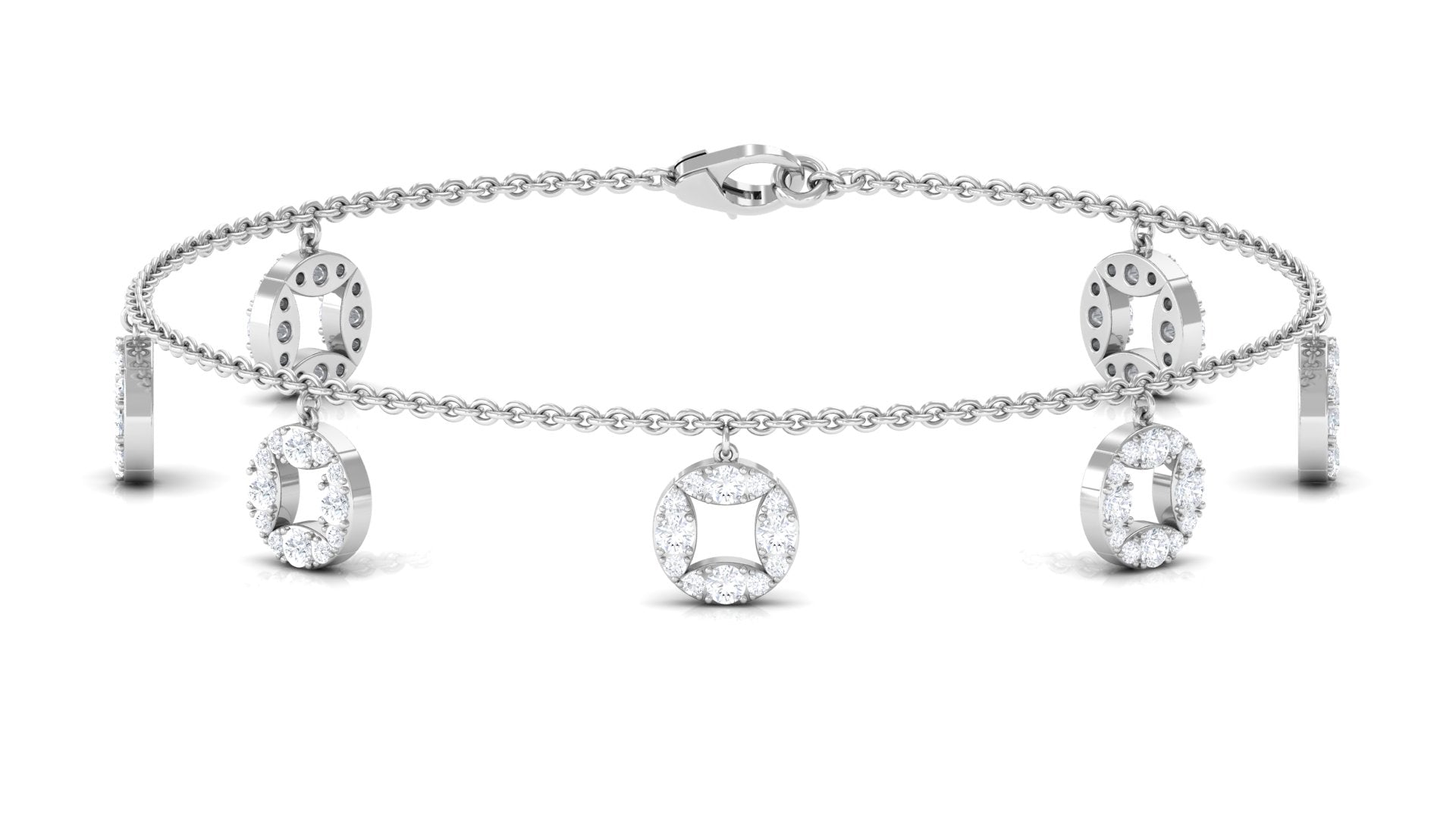 Immerse yourself in a world of royalty and sophistication with this exceptional Moissanite Chain Bracelet, designed to enchant you with its allure. Our exquisite bracelet features round shape Moissanite set in a circle charms. Meticulously crafted with precision and care, this Chain Charm Bracelet stands as a true emblem of everlasting love and elegance. With its D color and VS1 clarity, the moissanite exhibits a stunning sparkle, providing the brilliance of a diamond while being more budget-friendly. It produces a stunning interplay of light with each movement. This Disc bracelet is also ideal for brides seeking to infuse their wedding attire with a touch of royal elegance, seamlessly blending timeless sophistication with heartfelt beauty. Whether worn independently or in conjunction with complementary Moissanite jewelry, the Delicate Bracelet exudes grace, love, and a promise that shines eternally. This bracelet is striking enough to capture every gaze while remaining delicate enough to be treasured for a lifetime. Furthermore, it serves as an exquisite gift for your beloved on anniversaries or Valentines Day!