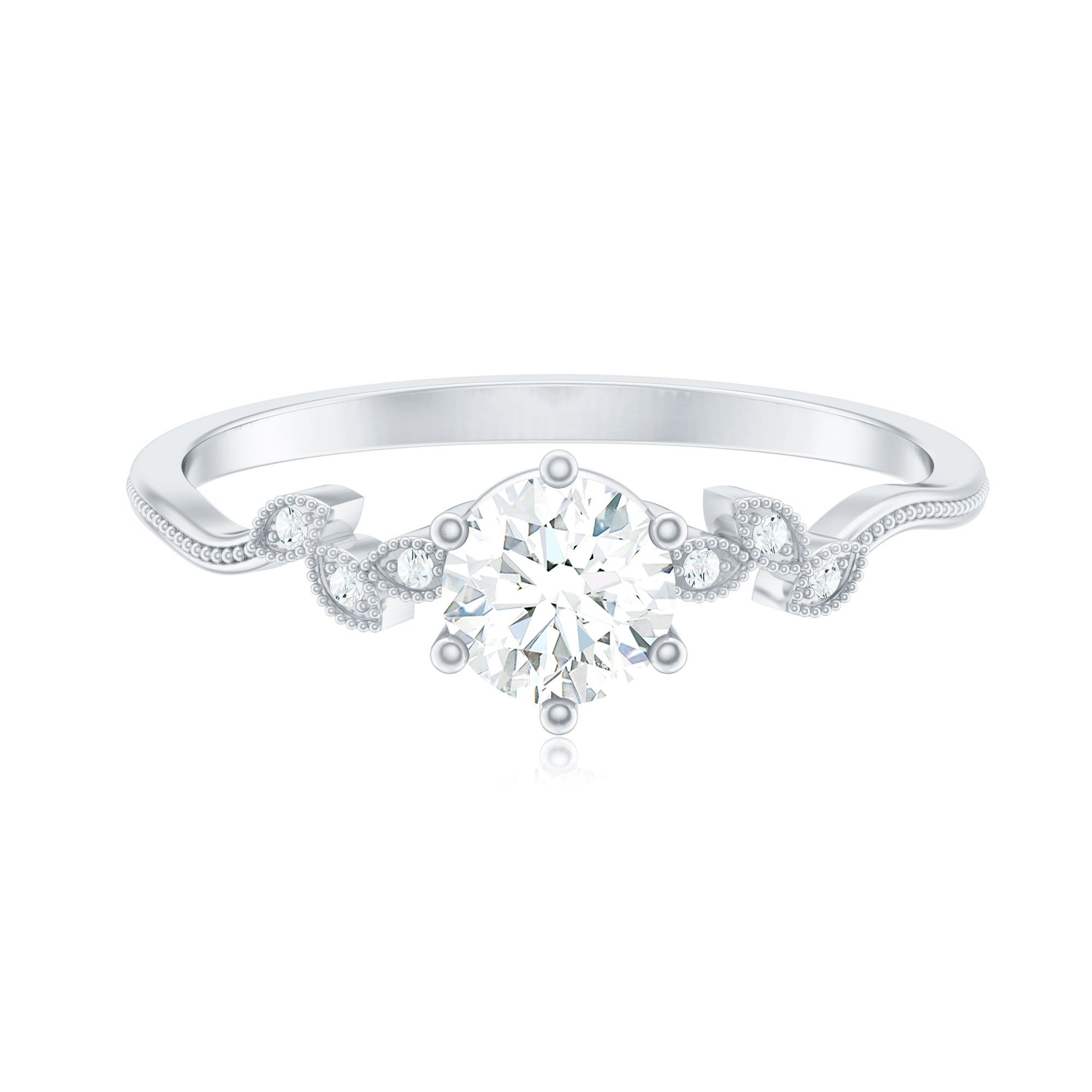 Certified Moissanite Flower Promise Ring with Beaded Detail