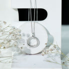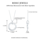 Our Moissanite Circle Necklace is a timeless masterpiece. Crafted from 14K White Gold Plated Silver, this is a stunning piece for women who value classic elegance. The round design of the necklace represents unity and everlasting love, making it a perfect gift for her. Featuring round cut moissanite stones set in prongs, this jewelry adds a sophisticated touch to any outfit. It is more than just an accessory, it is a bold statement of style and class. The Intertwined Circle Necklace comes with an adjustable cable chain, allowing you to wear it at various lengths, which makes it ideal for layering with another favorite necklace. This remarkable Eternity Pendant is a beautiful way to show your love for your partner, making it a fantastic choice for Valentines Day, birthdays, or anniversaries. A circle carries deep meaning, symbolizing eternity, life, perfection, and wholeness. Interlocking circles signify an eternal bond, showcasing everlasting love. Moissanite Stackable Necklace is designed specifically for that purpose. It is also visually striking, making it an excellent choice.