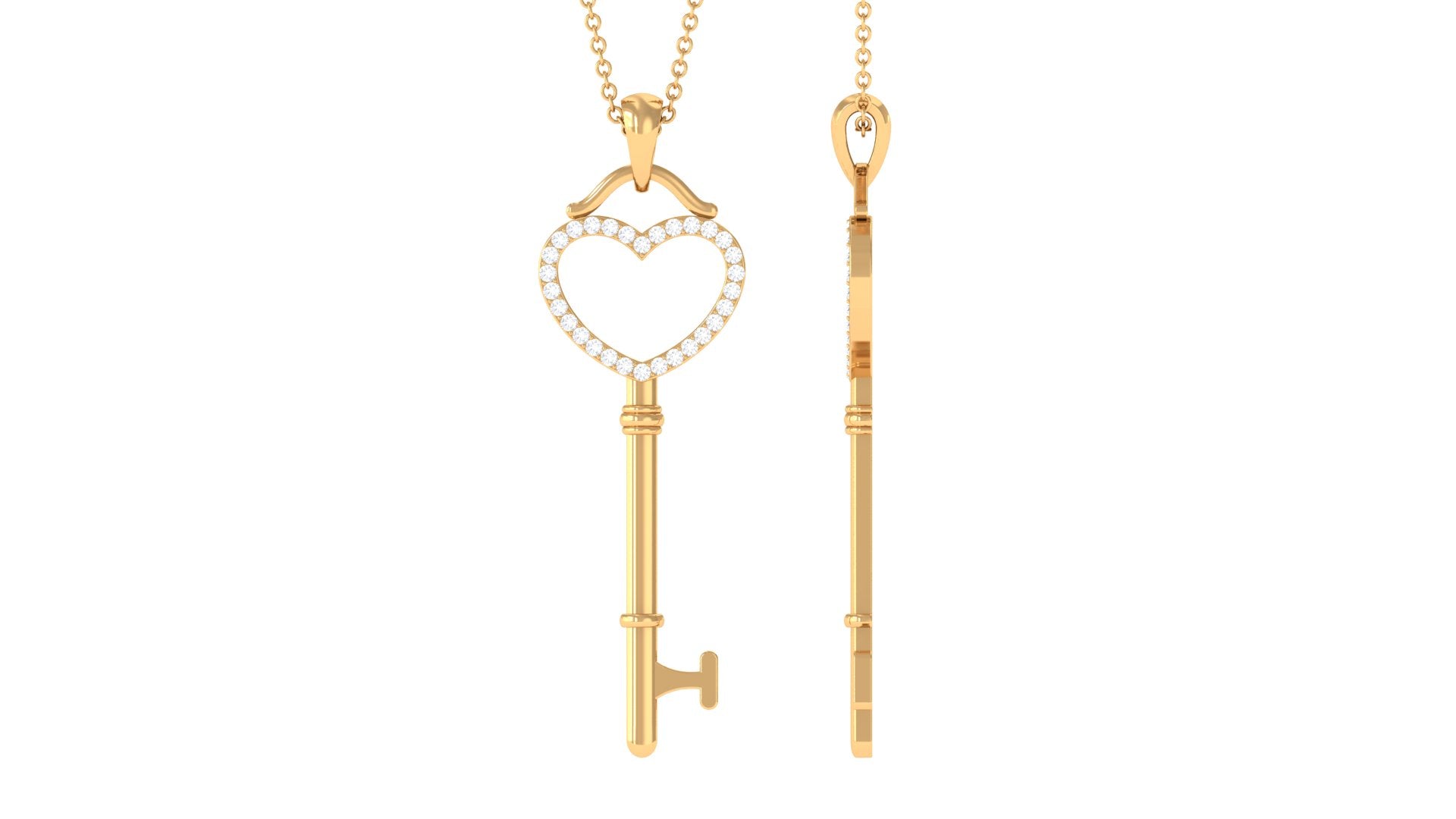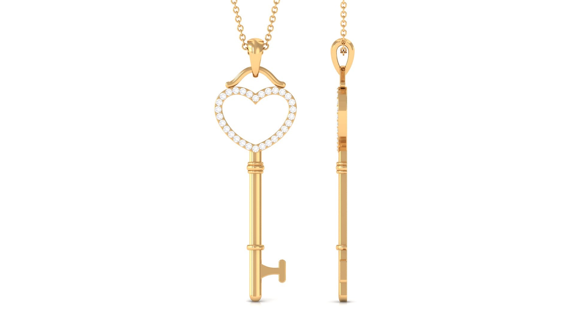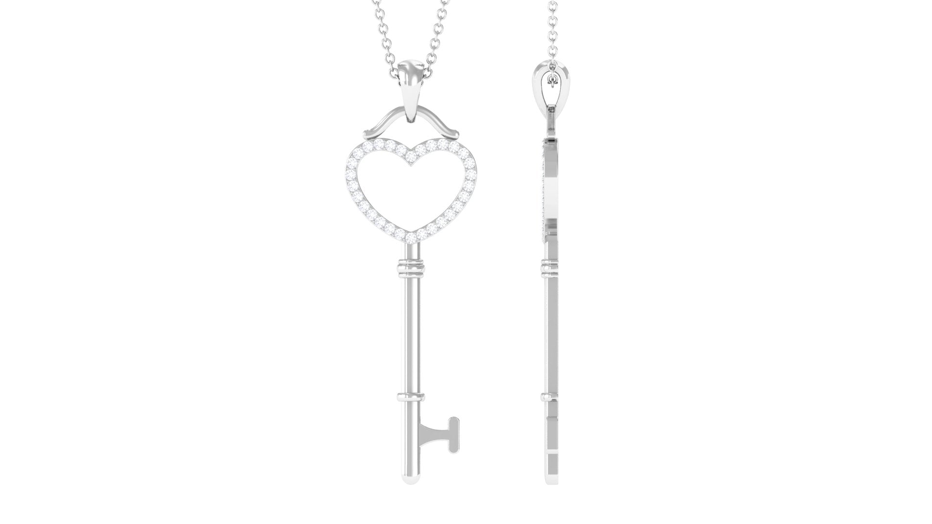 Elegant and full of meaning, this Heart Key Necklace is the perfect blend of charm and emotion. Designed in the shape of a classic key, it features an open heart shaped top beautifully outlined with shimmering D-VS1 Quality Moissanite stones in surface prong setting for added brilliance and elegance. They body of the key has a smooth and polished finish, giving it a modern and graceful feel. The unique design makes this Key Locket more than just a piece of jewelry - it is a symbol of love, trust, and unforgettable memories. It makes a heartfelt gift for birthdays, anniversaries, Valentines Day, or simply to remind someone how much they mean to you.