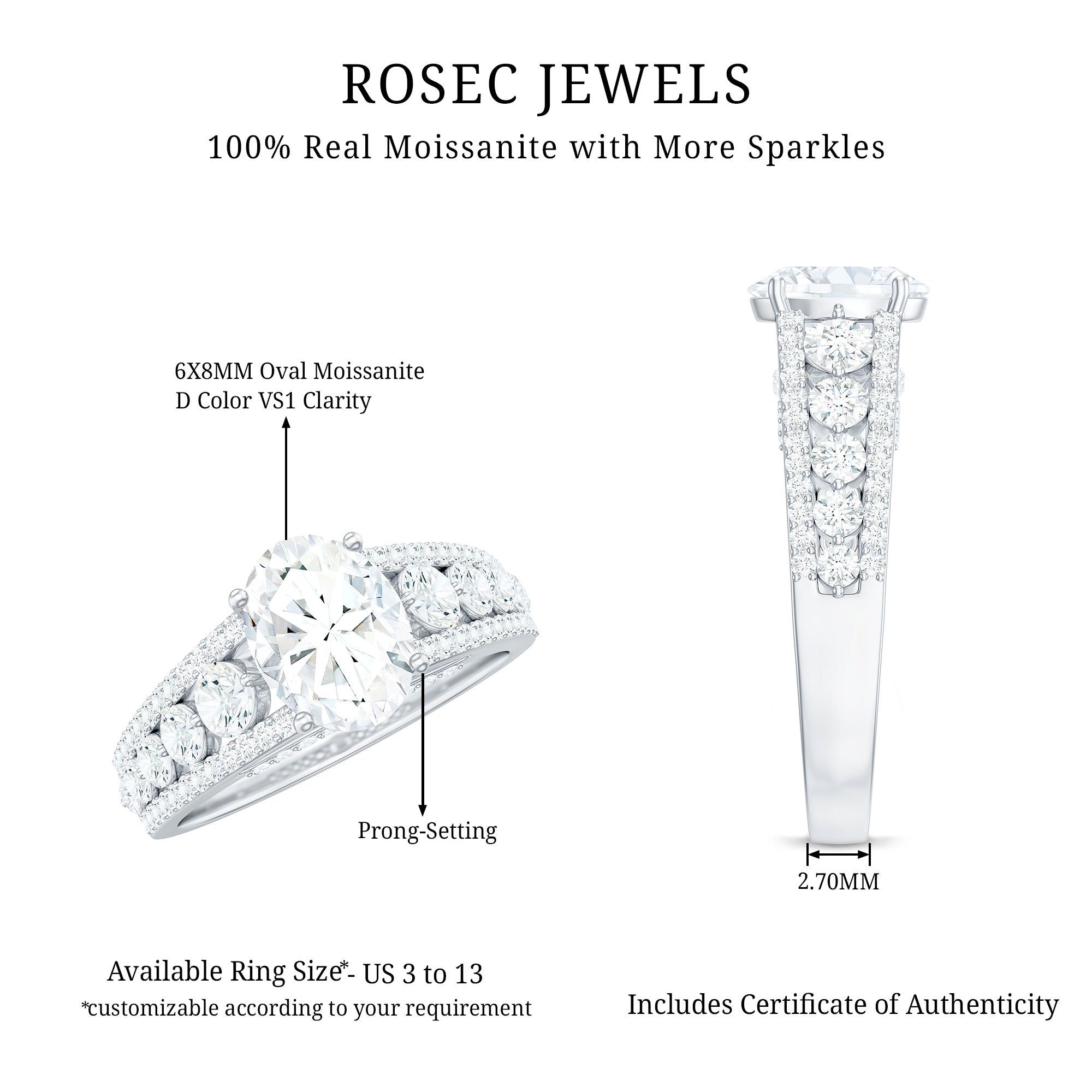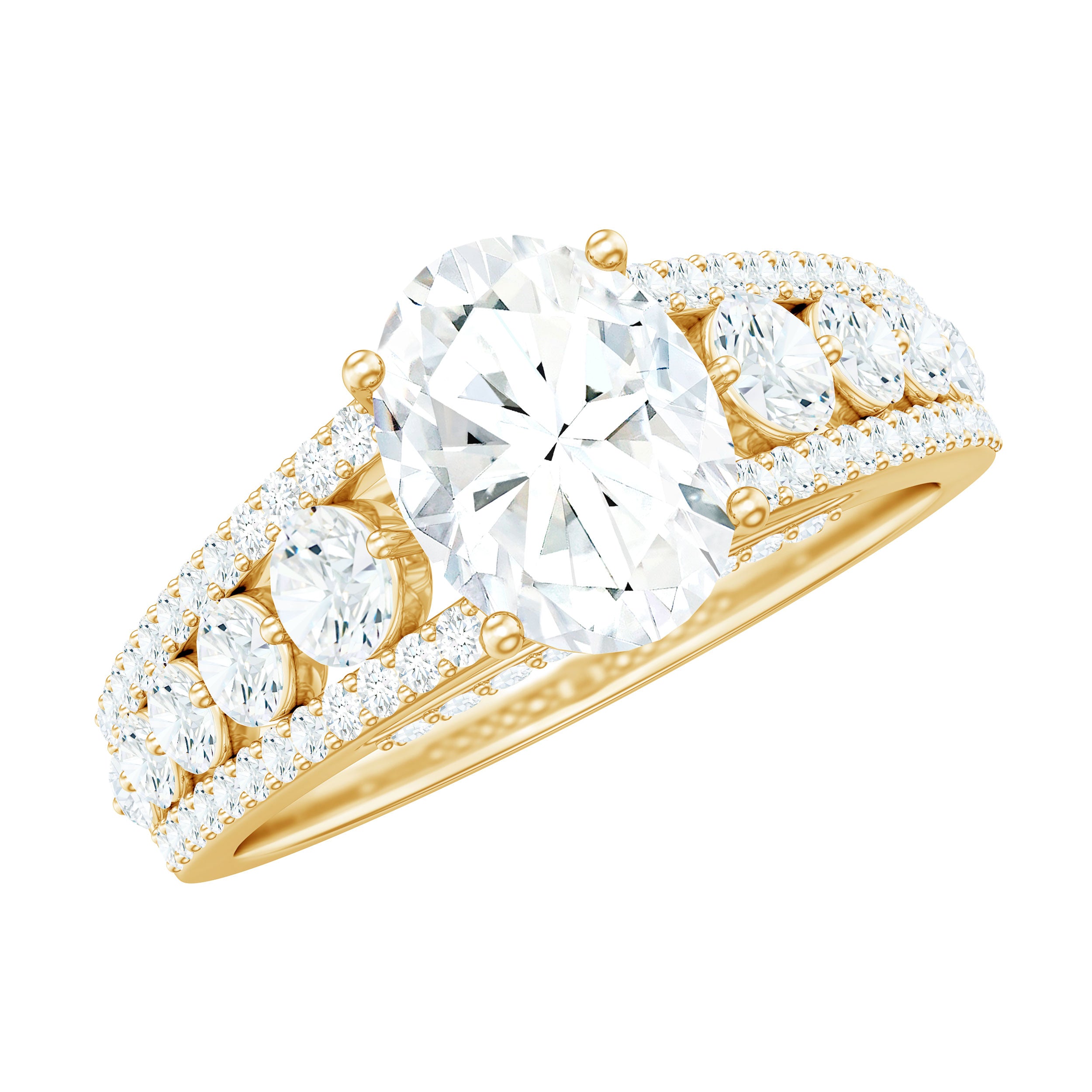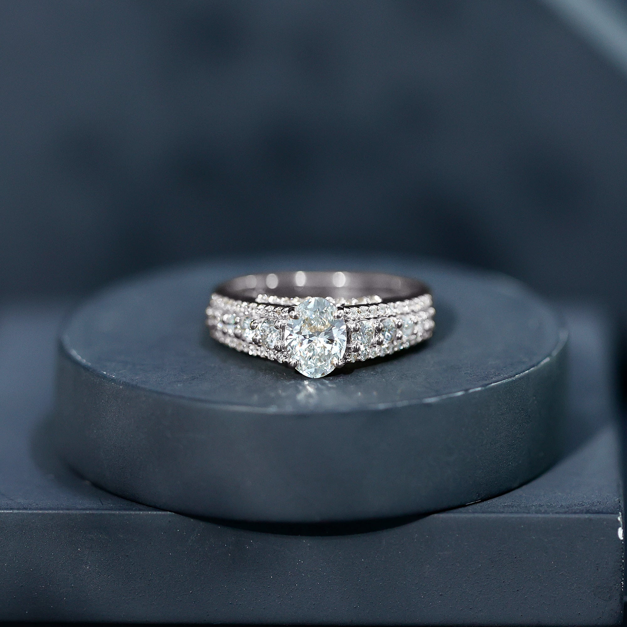 Certified Moissanite Oval Engagement Ring with Side Stones