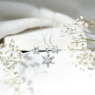 Sparkling like freshly fallen snow, this Moissanite Snowflake Pendant and Earrings Set brings charm and elegance to any special occasion. Each piece features round cut Moissanite stones arranged in a delicate snowflake pattern. The pendant gracefully hangs from a fine chain, while the matching earrings come with secure screw back closures, making them easy and comfortable to wear all day or night. Perfect for birthdays, anniversaries, or winter celebrations, this Moissanite Jewelry Set adds a touch of sparkle and sophistication. The snowflake design captures the beauty of nature, symbolizing individuality, uniqueness, and the quiet elegance of winter. Lightweight and carefully crafted, this Moissanite Necklace and Earrings Set is designed for comfort while maintaining a stunning appearance. The combination of the shimmering Moissanites with the intricate snowflake design creates a timeless accessory that complements any outfit, from casual wear to formal attire. Beautifully packaged and ready for gifting, this Winter Necklace Set makes a thoughtful present for someone you love or a special treat for yourself.
