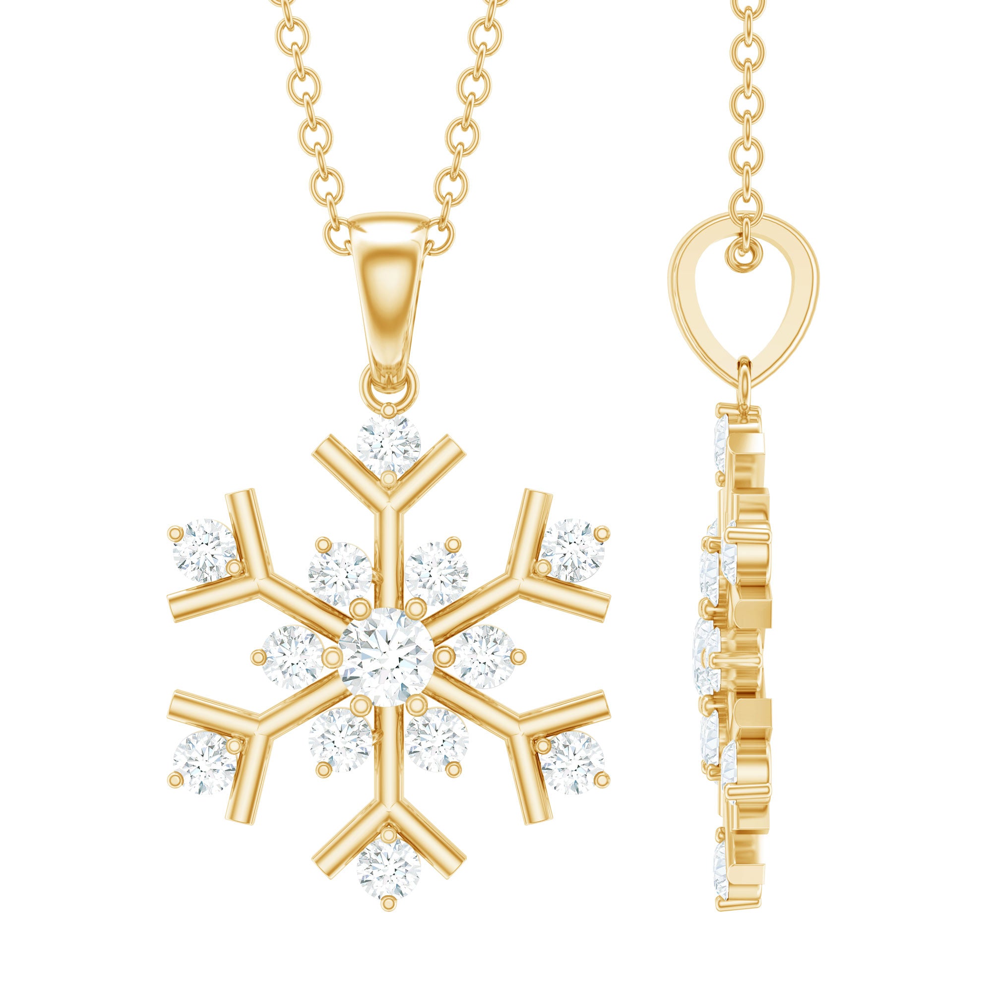 Adorn your neck with our exquisite snowflake pendant, featuring round moissanite and delicate metal strips. A perfect gift for cherished memories.