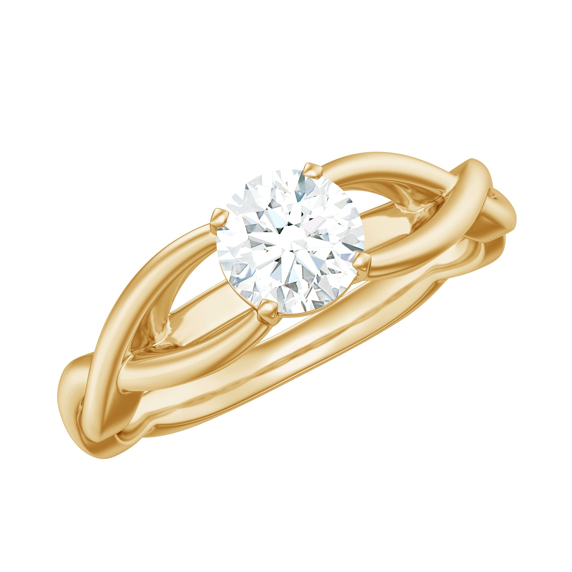 Certified Moissanite Solitaire Engagement Ring in Crossover Shank