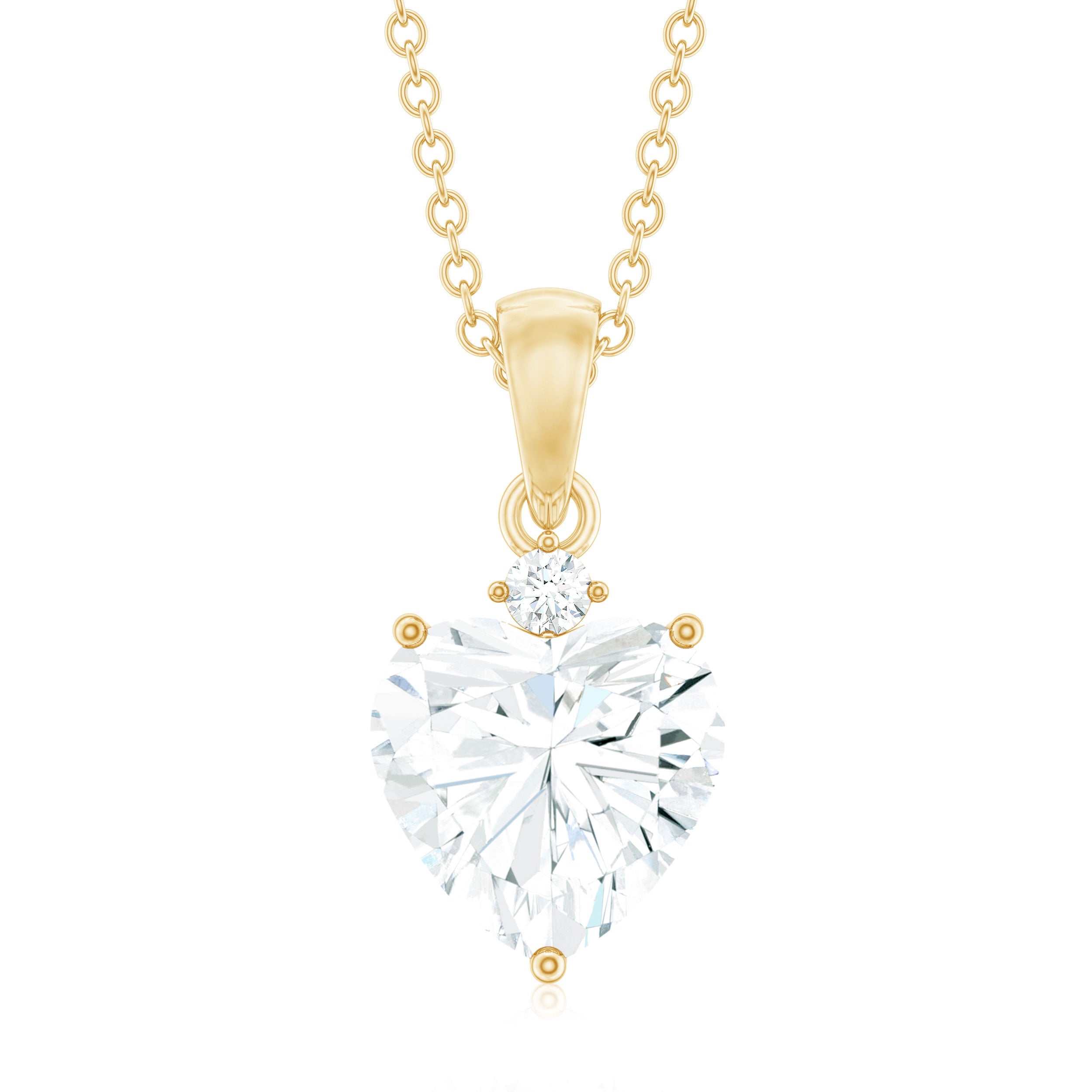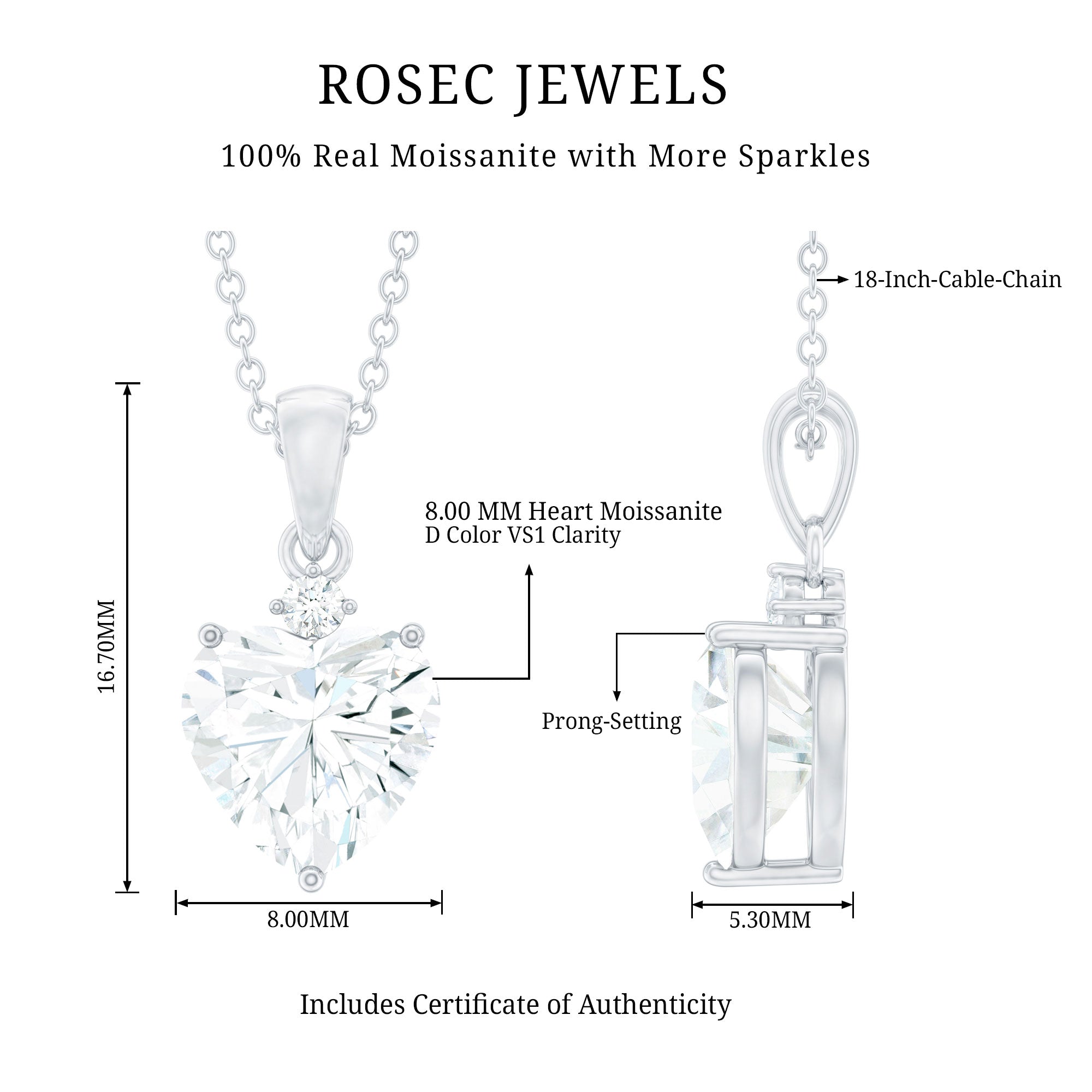 Perfect to wear on any occasion, this Heart Pendant Necklace is embellished with a Heart Shape Moissanite secured in 3 Prong Setting while a dainty Round Moissanite is studded on the top of it. The Moissanite Pendant will complement your casual or dressy attire with ease. Give our fantastic Heart Pendant Necklace to your love as a birthday present to make her heart flutter.