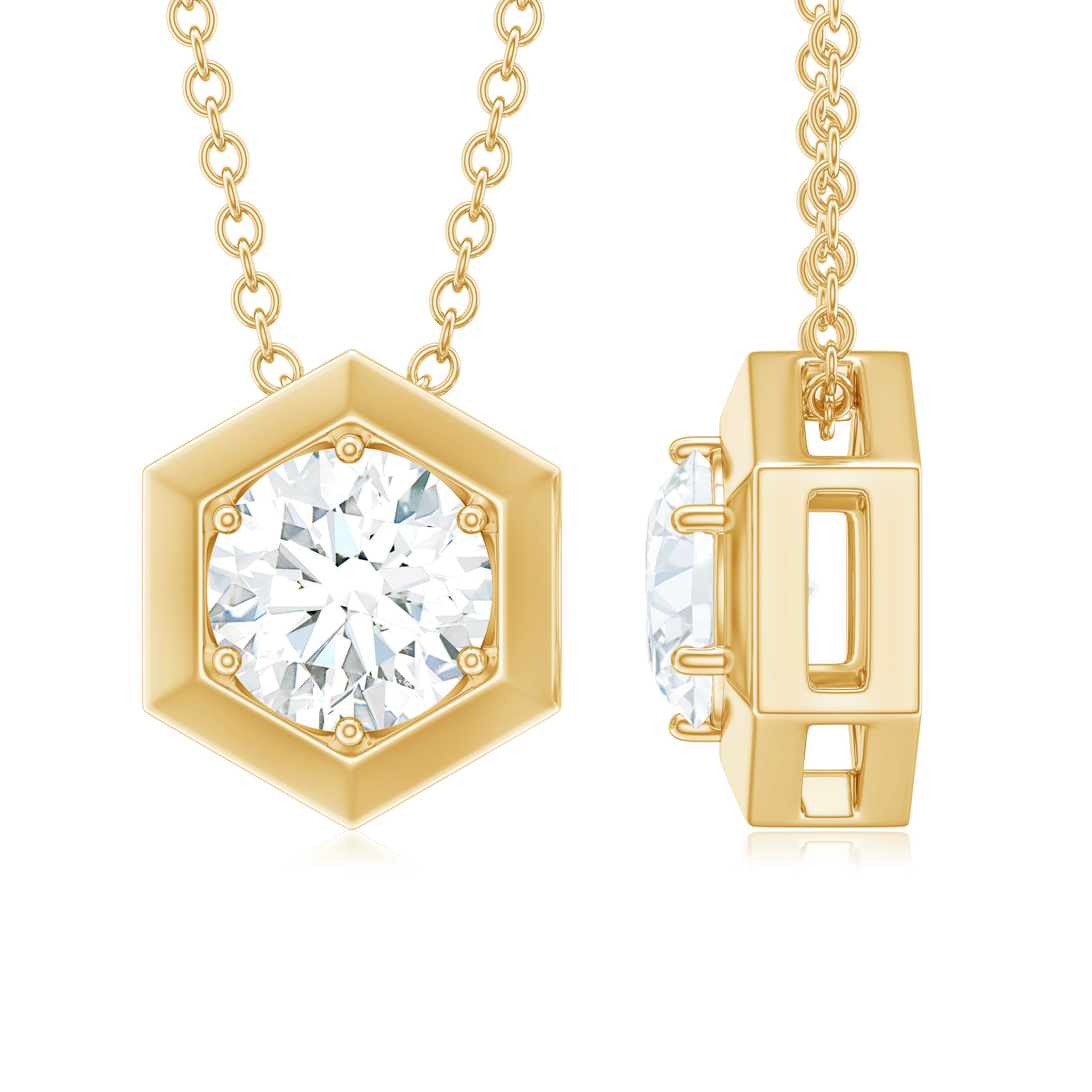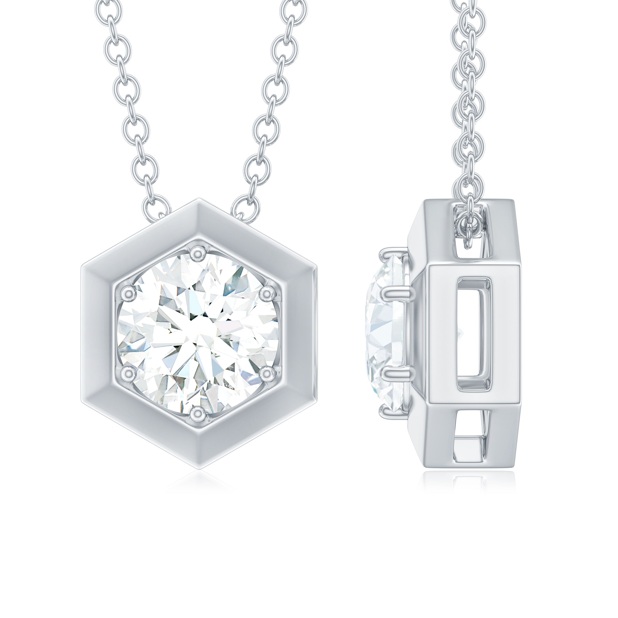 Certified Moissanite Solitaire Hexagonal Pendant
