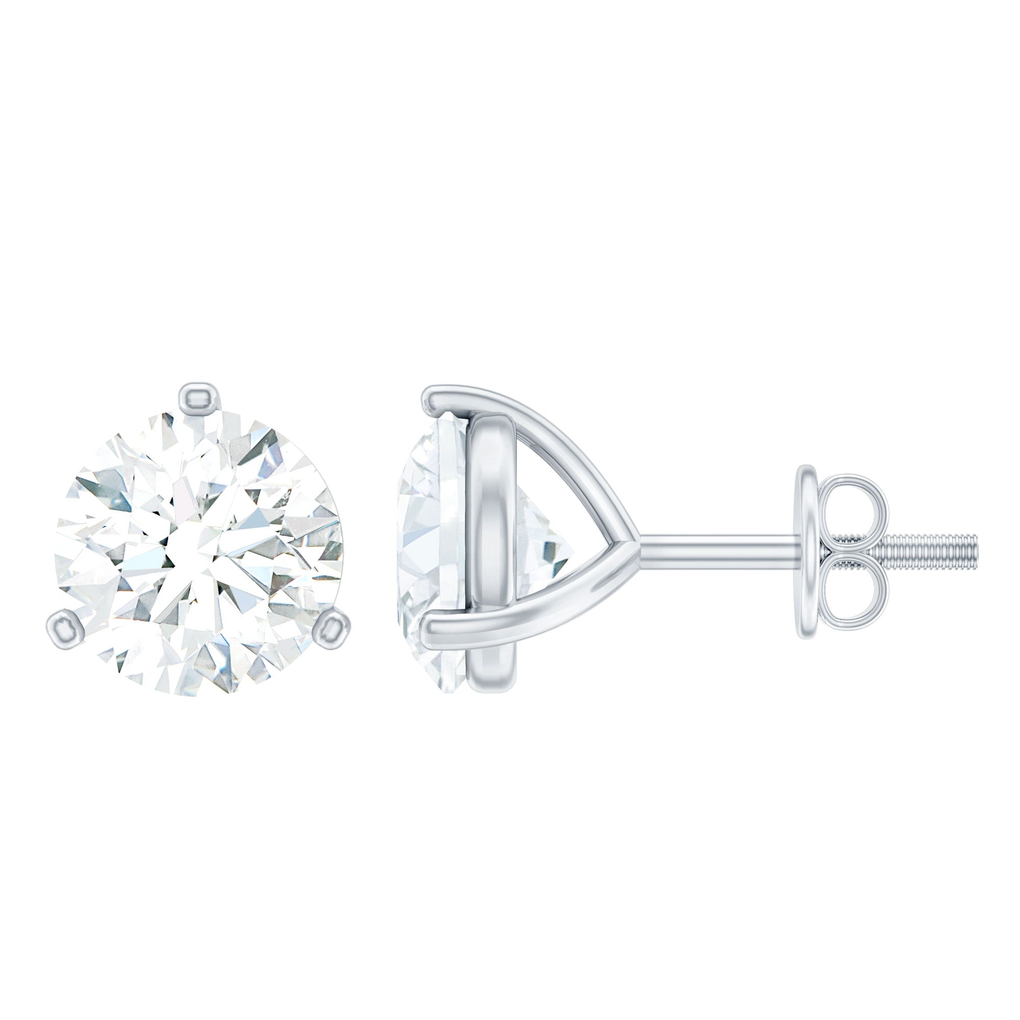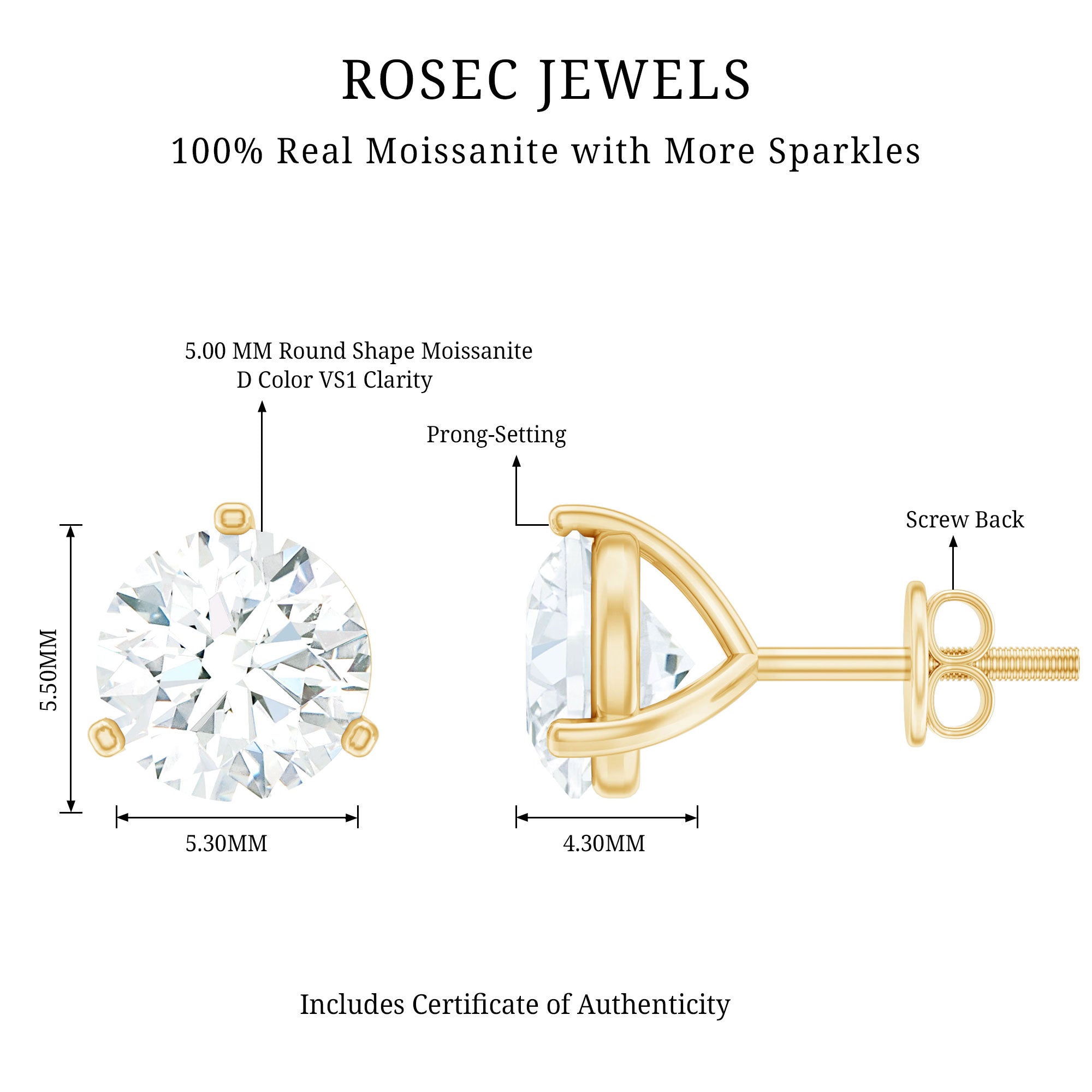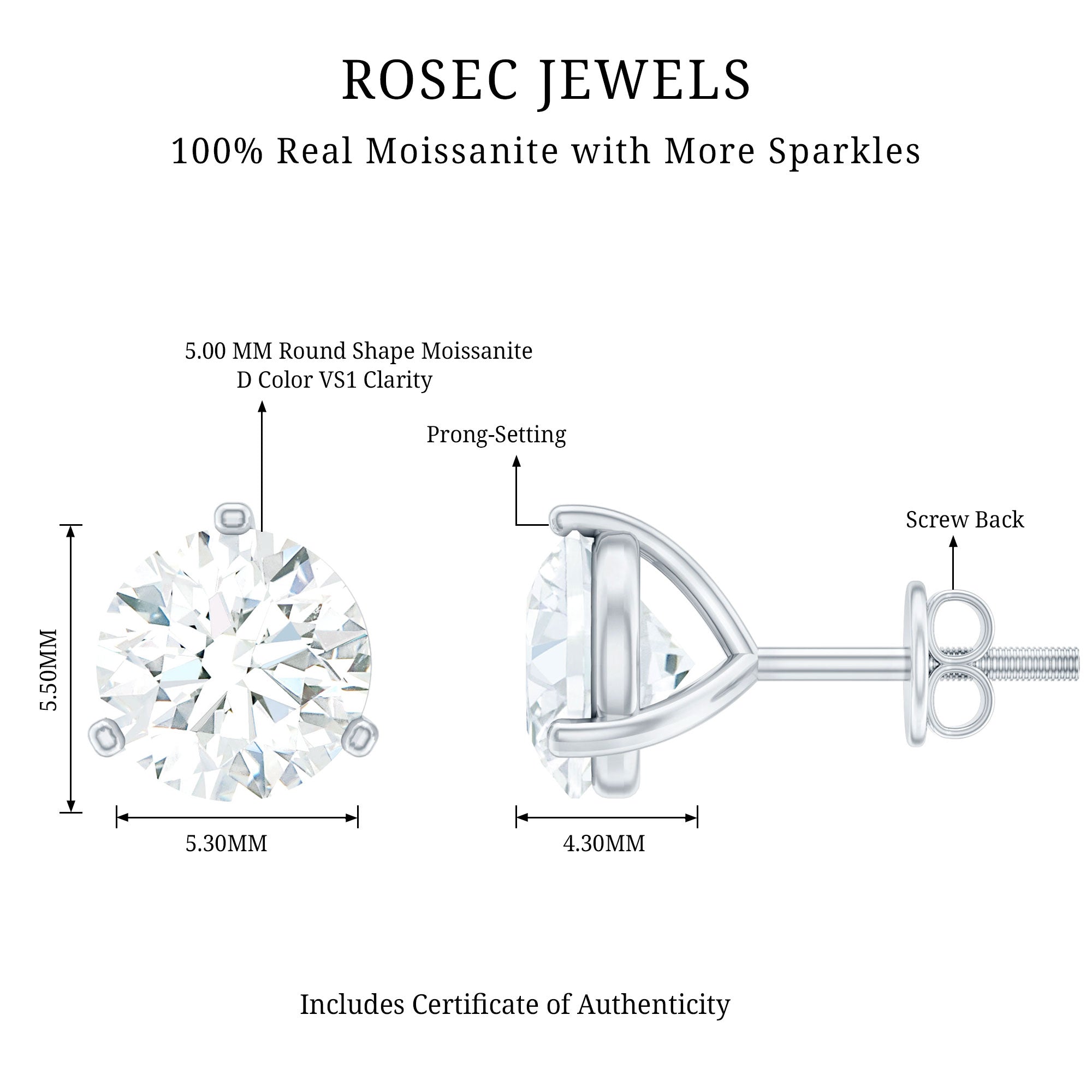 Simple and classic stud earrings with round cut Moissanite solitaire in a 3-prong setting. Perfect for everyday wear with timeless elegance.