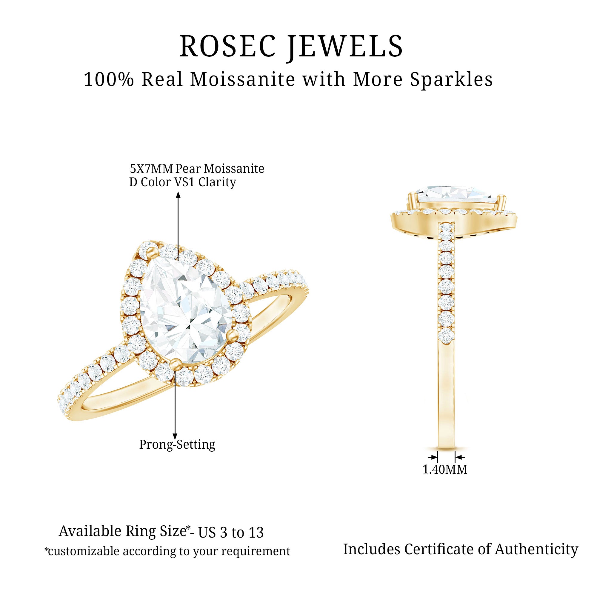 Certified Moissanite Teardrop Engagement Ring with Halo