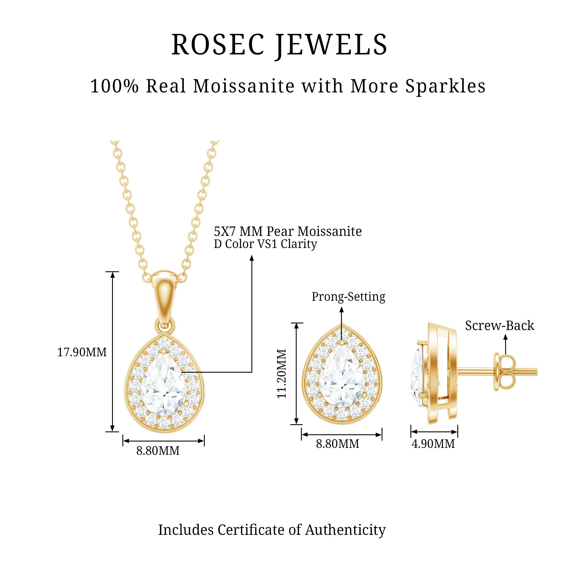 Certified Moissanite Teardrop Jewelry Set