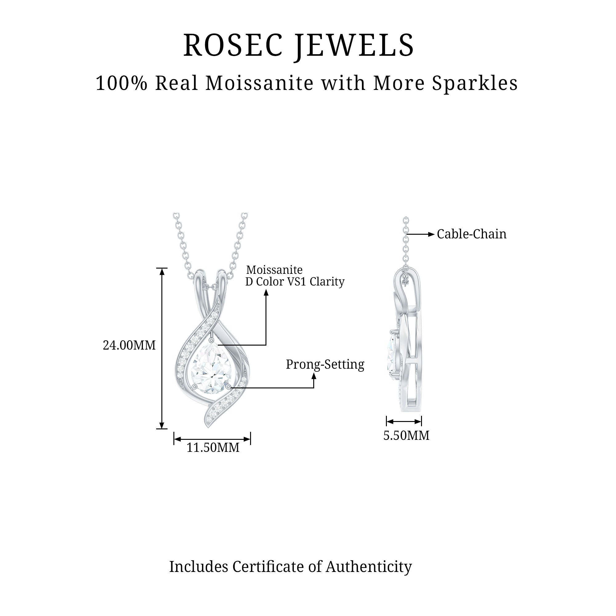 Prepare to be enamored by the breathtaking beauty of this Moissanite Pendant, guaranteed to capture your heart. It features a 6X8 MM Pear Shape Moissanite as a center stone, securely held in place in prong setting and dainty round moissanite creates a classic design, elevating the overall appearance of your outfit. This Teardrop Necklace effortlessly complements any ensemble, ensuring a flawless and stylish look. Get ready to make a statement with this stunning pendant that radiates elegance.