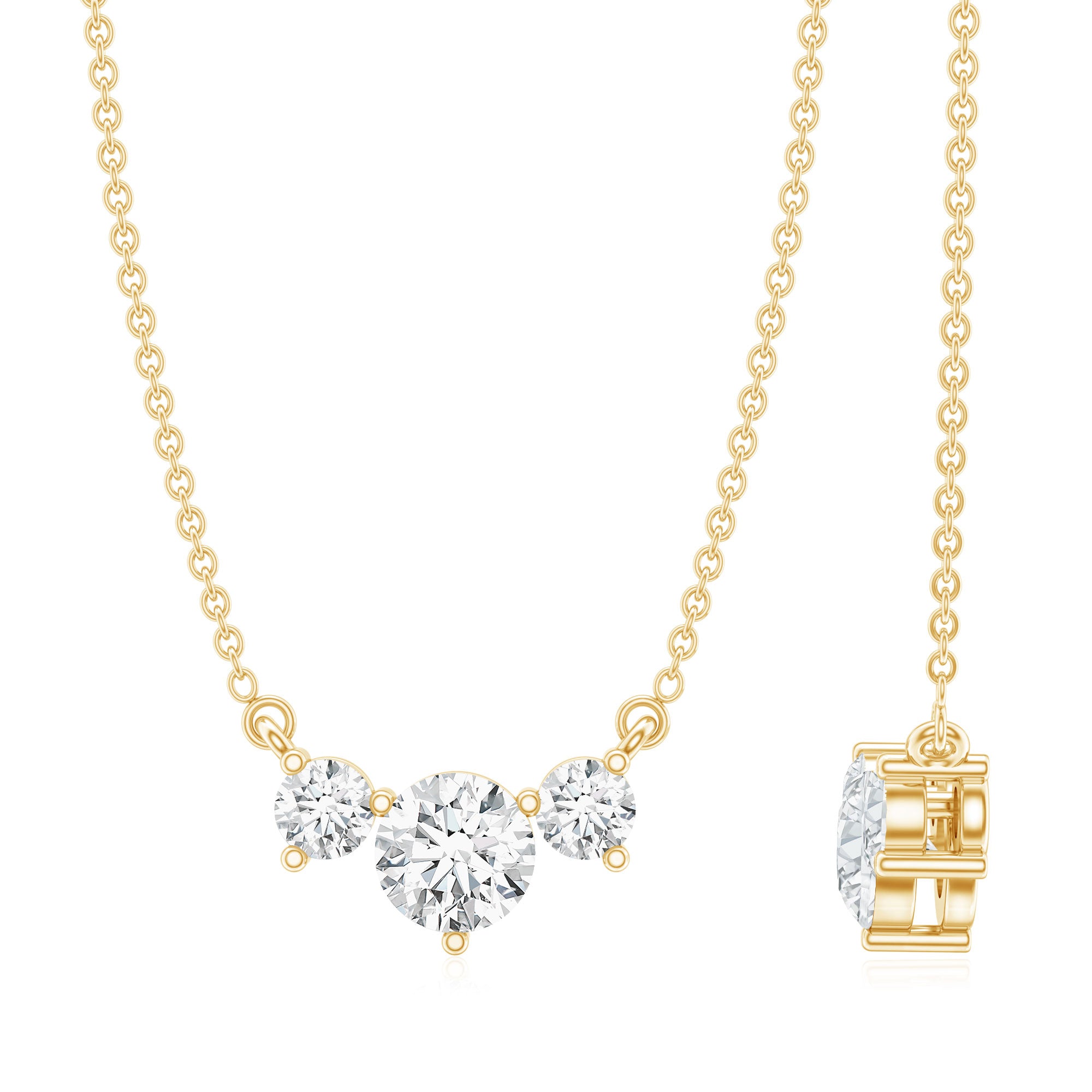 Certified Moissanite Three Stone Stackable Necklace