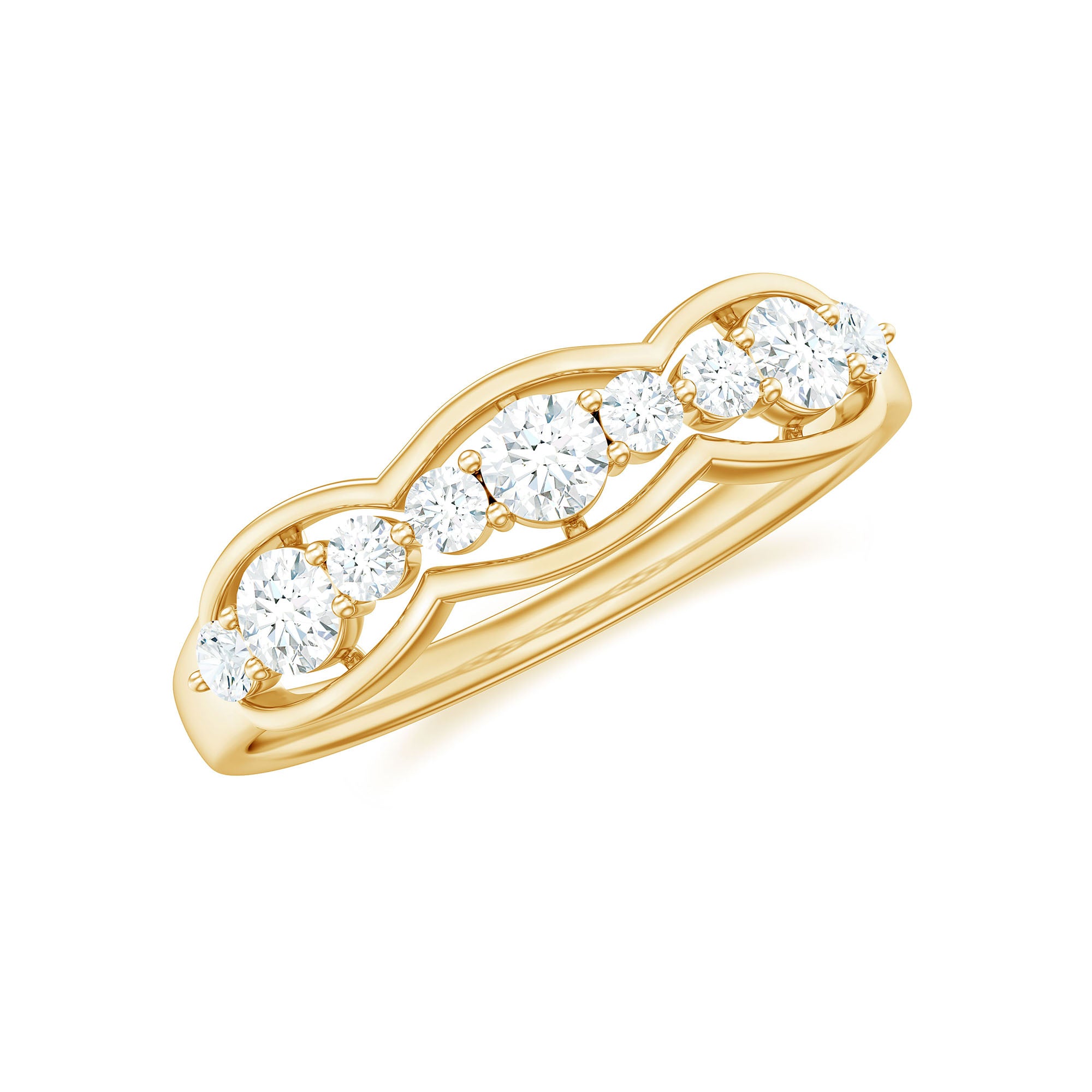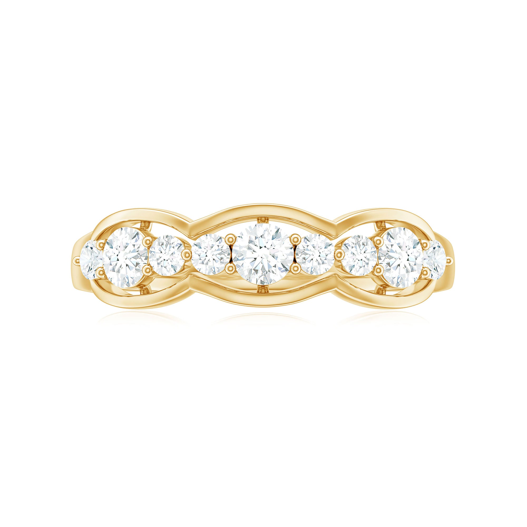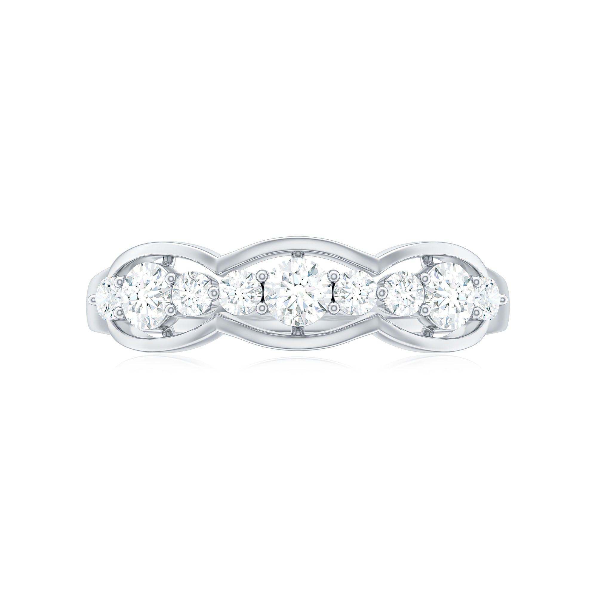 A beautiful blend of timeless style and sparkling brilliance, the Moissanite Anniversary Ring is a great way to mark special moments or add a touch of elegance to your daily look. Handcrafted with care, this Half Eternity Ring features round cut moissanite stones set securely in prong setting in the center of a stylish metal band. Designed with both classic and modern tastes in mind, this Wedding Anniversary Ring is versatile enough to suit many occasions. It is a perfect choice for brides who want a simple yet striking wedding band that pairs well with an engagement ring. Whether given as an anniversary gift, a wedding band, or a special upgrade to celebrate an important milestone, this Moissanite Ring holds deep meaning along with its stunning appearance. The D-VS1 quality moissanite stones shine with exceptional sparkle, making the ring an eye catching symbol of love and commitment. Comfortable to wear every day and designed to fit perfectly, this Wedding Eternity Band is a meaningful piece that combines elegance, durability, and style.