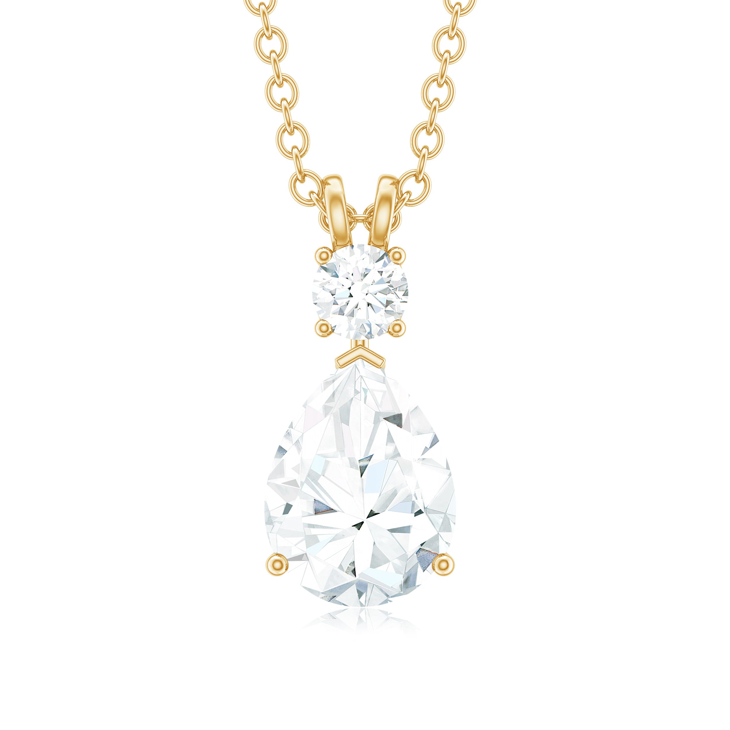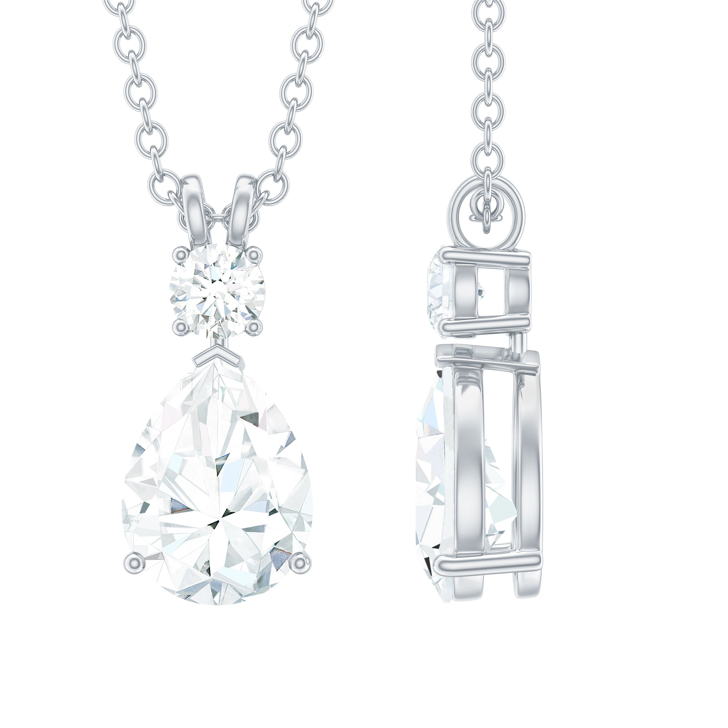 Versatile and elegant, this Moissanite Pendant complements office wear or an evening date. It features an 8X10 MM Pear Shape Moissanite, securely placed in Prong Setting with a shimmering round Moissanite on top. This Teardrop Pendant Necklace exudes D-VS1 Quality Moissanite make it perfect to add shimmer to your basic look. This Wedding Necklace is precisely crafted to embrace your neckline and will be delivered to you in a classic jewelry box for storage when not in use.